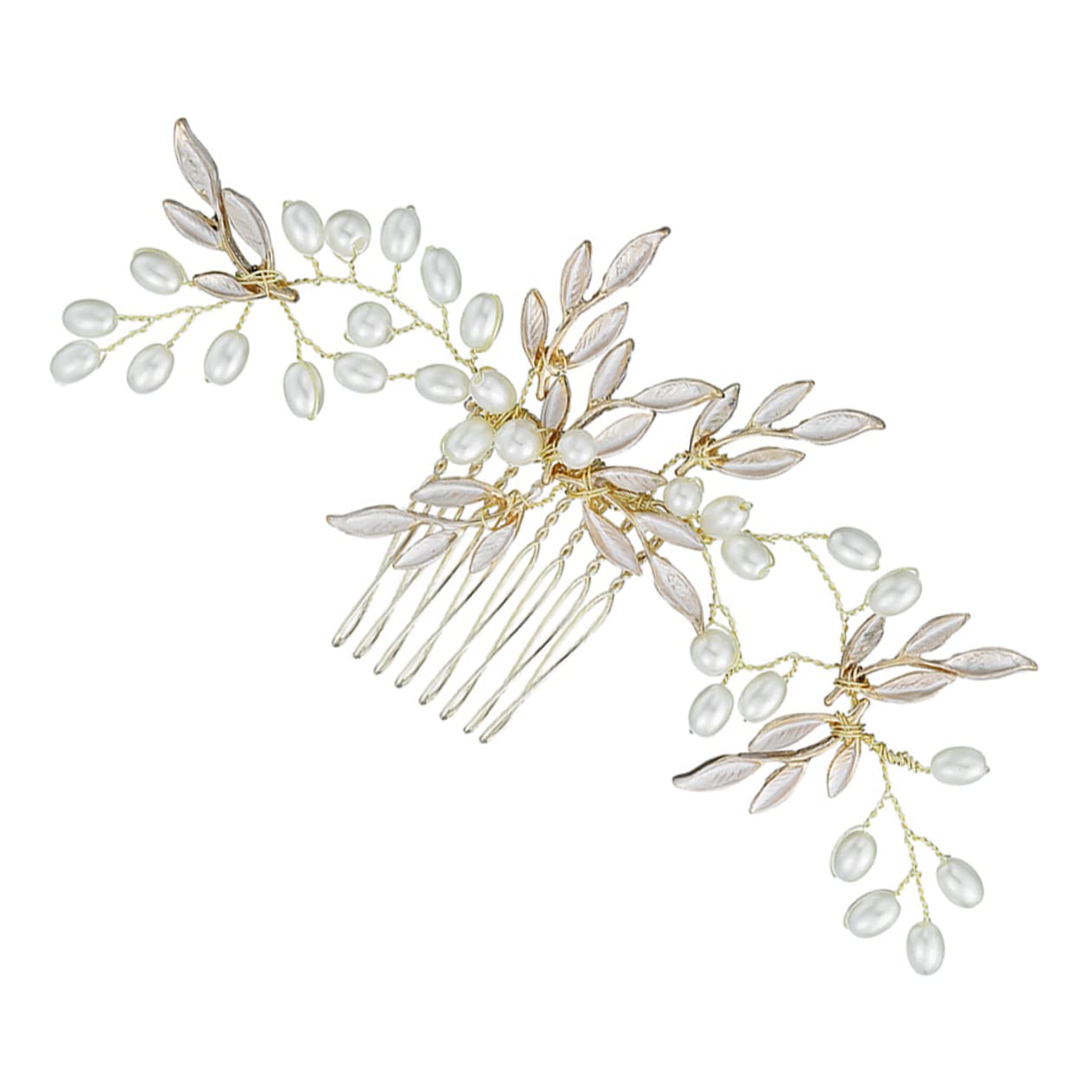 Package List 1 x Hair Comb Characteristics -Size: About 14.00X6.50X1.00cm/ 5.50X2.55X0.39in Bridal Comb Barrette. -Color: Golden hair brooch wedding. -Material: Alloy Alloy Hair Decor. - Made of alloy material, durable for long lasting use wedding hair piece. - It can match Chinese traditional clothes and will decorate it Hair Comb. - The pearl and alloy leaf make the hair comb more beautiful and exquisite Handmade Hair Decor. - With the decoration of this hair comb, you will be more attractive and unique wedding hair accessories. - Perfect for many occasions, such as birthday party, wedding party, shopping and etc pearl headband. Goods Information wedding tiara The pearl and alloy leaf make the hair comb more beautiful and exquisite.rhinestone decor Perfect for many occasions, such as birthday party, wedding party, shopping and etc.macrame decor This is a beautiful hair comb for female, which is made of alloy material, durable for long lasting use