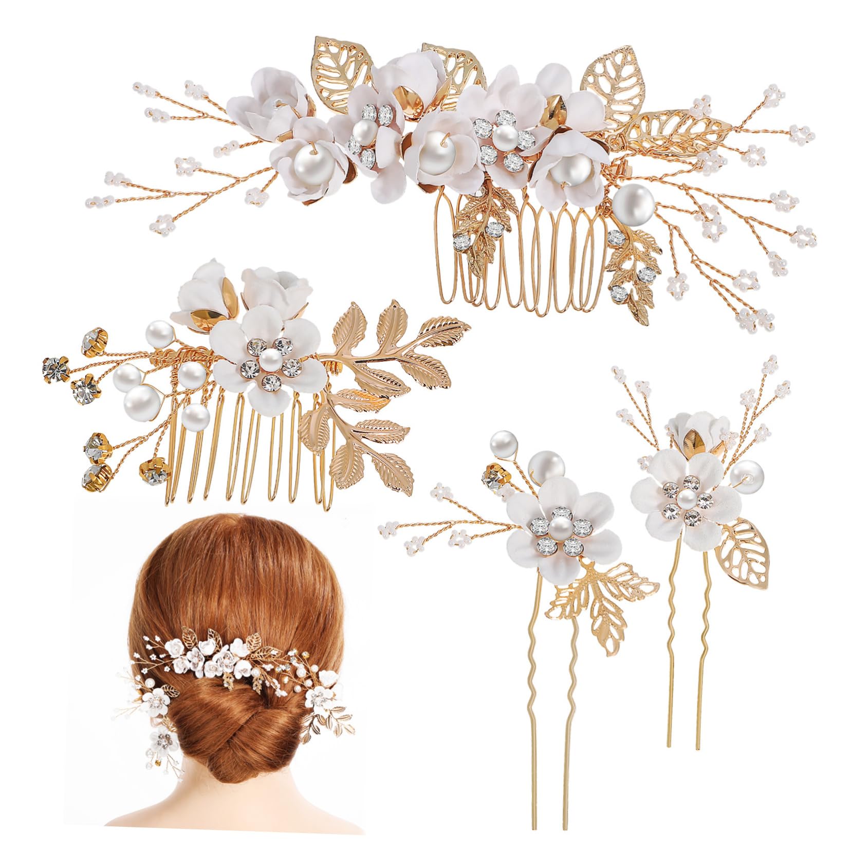 Package Include 2 x hair side combs 2 x hair pins Features -Detailed craftsmanship: Made with attention to detail, these wedding hair accessories feature durable materials and meticulous craftsmanship for enduring shine bridal headpiece. -Versatile styling: Whether worn individually or as a set, these side combs and hairpins offer multiple styling possibilities, complementing various hairstyles Flower Hair Accessories. -Suitable occasions: for weddings, proms, parties, or even as a charming addition to your daily outfit, these hair accessories elevate any look with elegance Flower Hair Side Combs. -Exquisite embellishments: The combination of artificial pearls and rhinestones imparts a luxurious, sophisticated aesthetic to the flower hair accessories floral slide hair clips. -Size: 13.00X6.00X1.00cm/5.11X2.36X0 bridal hair clip. -Color:White flower bridal combs -Secure hold: Designed to stay in place without compromising comfort, the flower side combs and hair pins keep your hair perfectly styled throughout the event Slide Bun Holder. -Material:Artificial pearl, alloy, fabric, rhinestone Hair Decorations Goods Information Hair Comb Clip Each piece is intricately designed, elegantly framing your face.wedding hair accessories Adorned with artificial pearls and shimmering rhinestones, these hair accessories present glamour and grace, for weddings, proms, or any special occasion.bridesmaids hair jewelry Add a touch of sophistication and glamour to your hairstyle with our exquisite Flower Hair Side Combs and Hairpins SetRhinestones wedding hair clip-- steady yet comfortable: designed to firmly anchor in place without causing discomfort, flower side combs and u shaped hairpins make a stable hairdo,rhinestones wedding side comb. Combs for holding hair back-- exquisite craftsmanship: both the side combs and floral hairpins are crafted with utmost precision and attention to detail, giving the wearer a sophisticated touch,decorative hair combs. Flower hair accessories-- suitable occasions: for weddings, proms, parties, or even as a charming addition to your daily outfit, these hair accessories elevate any look with elegance,bridesmaids hair jewelry. Flower hair side combs-- exquisite embellishments: the combination of artificial pearls and rhinestones imparts a luxurious, sophisticated aesthetic to the flower hair accessories,wedding hair pins. Rhinestone hair accessories-- versatile styling: whether worn individually or as a set, these side combs and hairpins offer multiple styling possibilities, complementing various hairstyles,side combs for styling.
