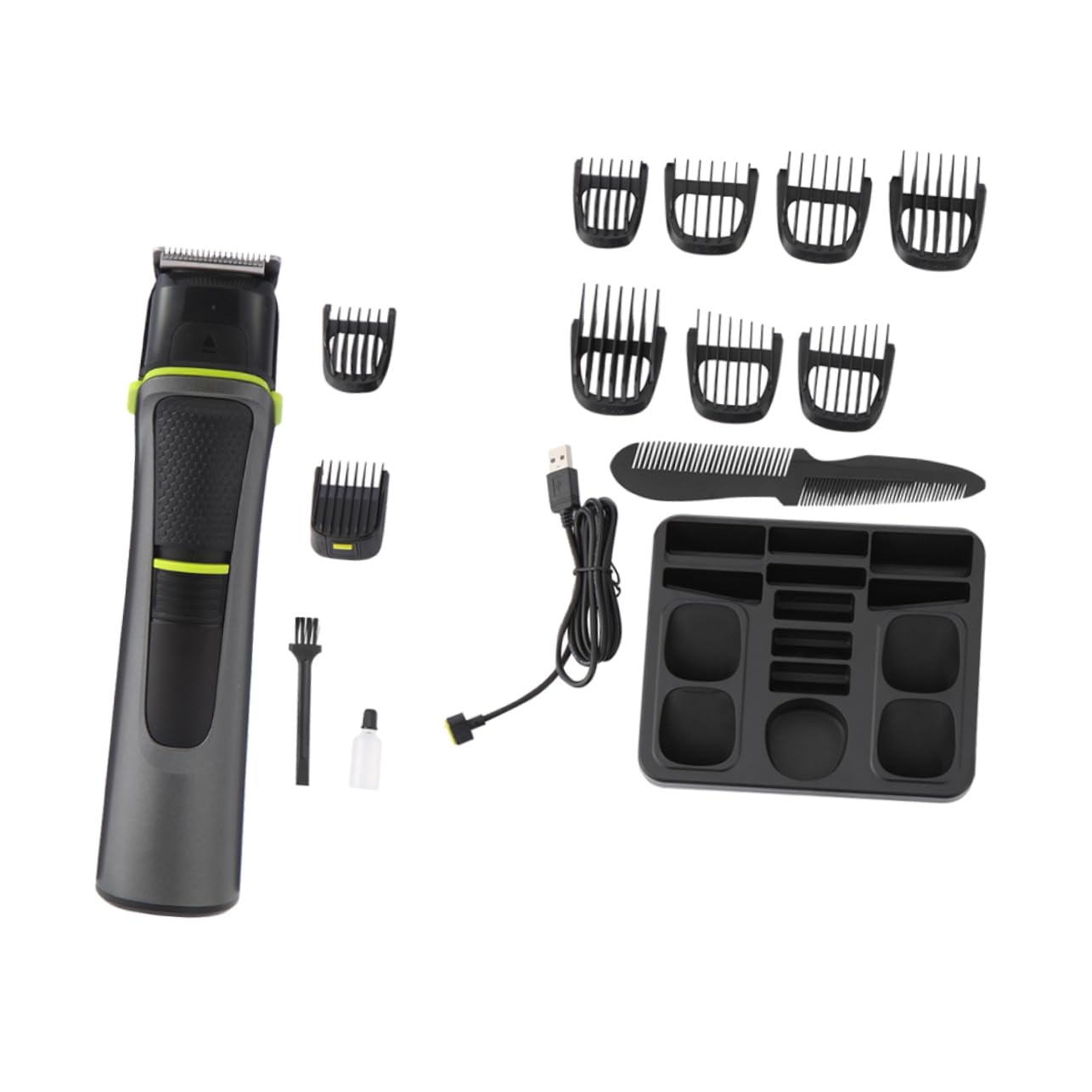 Package Include 1 x trimmer 1 x comb 1 x lubricant oil 1 x charging cable 1 x cleaning brush 1 x manual 4 x replacement heads 9 x combs Features - Charging Time: 2 Hours hair trimmer clippers. - Size: About 16.80X3.80X3.00cm/6.60X1.49X1.18inch Electric Haircut Kit. - Shaving for hair salon: retro oil head/ cutting line/ carving pattern/ trimming/ pushing white/ corner electric hair trimmer. - Usage Time: 60 Minutes Salon Hair Clipper. - Material: Steel electric shavers. - Color: Assorted Hair Cutting Kit. - It’s absolutely an for father, husband, boyfriend and your son men hair trimmers. - The professional hair clipper is good for home or barber hair cutting Electric Barber Clippers. - The teeth on the trimmer are tightly line up with each other to remove hair with no snagging or pulling, offering an effective haircut Electric Beard Trimmer. - The trimmer's precise steel create clean, straight lines and evenly trim through the thickest hair Hair Clippers. Goods Information Hair Clippers High motor, stable and efficient hair trimming, it won't wrap around the hair or damage your skin.men hair trimmer This professional electric shaver kit is made of premium materials, durable for long lasting use.Household Hair Clipper Suitable for a variety of haircuts