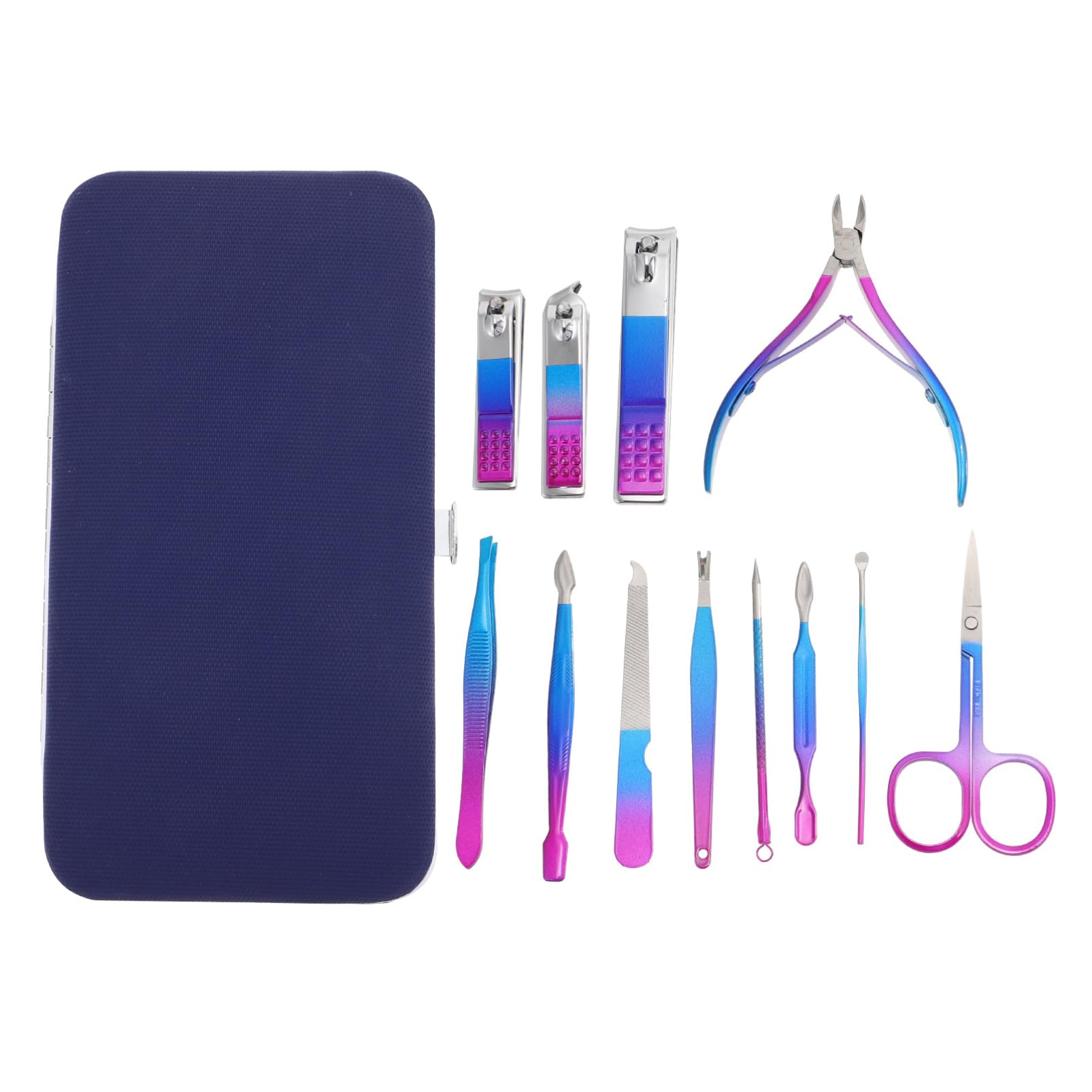 Package Include 1 x Big flat mouth nail clipper 1 x Flat nail scissor 1 x Oblique nail clipper 1 x Eyebrow scissor 1 x Eyebrow clip 1 x Nail file 1 x 1 x Ear pick 2 x Dead skin push 1 x 1 x Dead skin pliers Characteristics - Color: Colorful nail polishing tools. - Size: About 15.50X8.50X1.50cm/ 6.09X3.34X0.59inch Nail Clipper Set. - Material: Stainless steel, PU Manicure Tool. - materials, wear resistant, beautiful and firm, durable, and service life Nail . - Each tool has different functions, very simple but practical Pedicure Care Tools. - Suitable for manicure, surface polishing and nail polish removal Fingernail . - You can store them into your bag or suitcase when not in use nail art supplies. - You can always easily find them when you need to use them manicure polishing tools. Goods Description nail trimmers This item is a set of nail clipper tool, which is made of premium stainless steel and PU with exquisite workmanship for durable and lasting use.Manicure Tool You will get your money's worth with this manicure tool.nail art supplies The nail will be of great help for your daily life