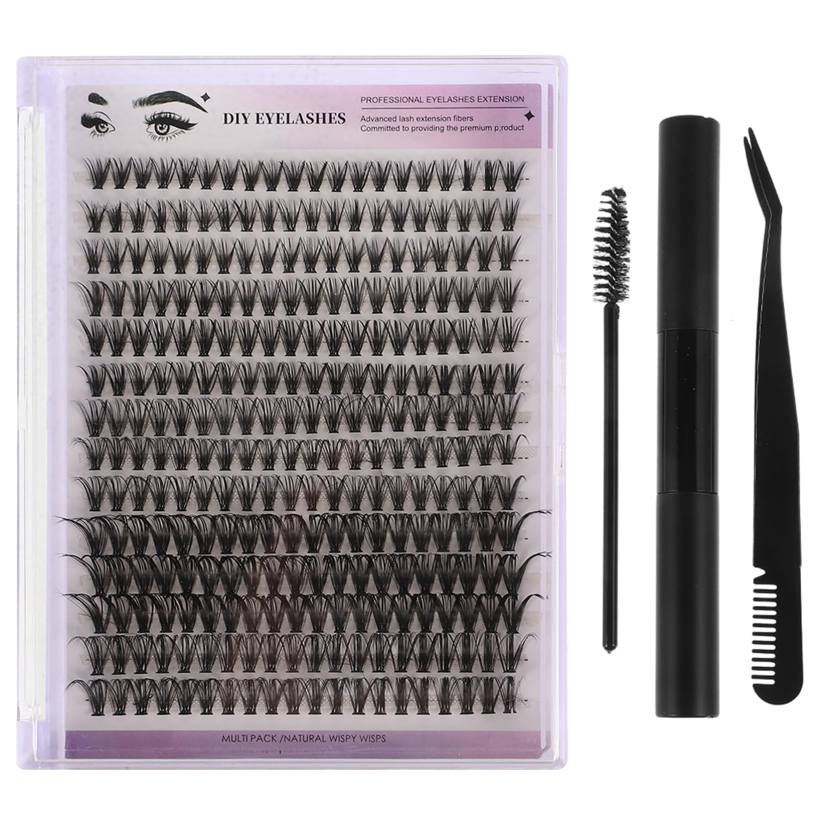Description Experience the ultimate in lash with our Cluster Eyelash Extensions Kit. The segmented design allows for precise application, ensuring a natural look that enhances your eyes beautifully. Made from synthetic fibers, these lashes the appearance of real lashes, giving you a , longer look effortlessly. Features - Color: Black -Material:Paste , Plastic - Size: 12.00X1.20X1.20cm/4.72X0.47X0.47in - Size: 12.00X0.20X0.20cm/4.72X0.08X0.08in -Segment design for easy application: each eyelash can be segmented for a more natural and look, enhancing your eye makeup effortlessly. -Realistic and beautiful: made from synthetic fibers, these lashes provide a dense and long appearance, mimicking natural lashes. -Diy eyelash kit: includes various lengths and curls, allowing you to create a unique eye makeup look that suits your style. -Portable and convenient: comes with a handy tool kit for easy storage and transport, ensuring your eye makeup stays wherever you go. -Gentle removal: features a mild formula that allows for easy removal without damaging the delicate skin around your eyes. - Color: Black. - Size: 12.00X1.20X1.20CM. Package Including 1 x False Eyelashes 1 x Eyelash Glues 1 x Eyelash Tweezers with Combs 1 x Eyelash Brush