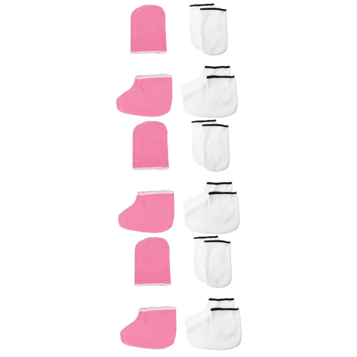 Package Include 6 x pairs of foot covers 6 x pairs of gloves Features - Material: Polyester, Knitted Fabric paraffin wax bath accessories. - Color: White Pink Wax. - Size foot cover: About 25.00X20.00X0.50cm 9.82X7.87X0.20inch Removing Covers. - Note: This set includes 2 pairs of foot covers and 2 pairs of gloves polyester gloves. - Size glove: About 25.00X15.00X0.50cm 9.82X5.89X0.20inch Foot Spa Covers. - Suitable for personal daily skin care, home wax SPA DIY, and professional SPA or salon services Thermal Gloves. - Help to penetrate the nutrients and essence into your skin for better absorption, maximizing the effect of your paraffin wax bath treatment Thickened Foot Covers. - Made of fully washable and reusable material, they are easy to clean after use for your convenience paraffin wax gloves. - With these wax SPA helpers, you can soothe, moisturize, and rejuvenate the dryness and roughness of your hands and feet shower glove. - Great for paraffin wax bath, hot wax , wax care treatment to relieve your daily tiredness spa gloves. Goods Information healing Are you suffering from cracked skin, skin peeling, rough skin on your hands and feet? A simple paraffin treatment or other skin care for your hands and feet would make a huge difference! The care gloves and foot covers are well made of material, soft, comfortable and durableExfoliating foot covers gloves-- help to penetrate the nutrients and essence into your skin for better absorption, maximizing the effect of your paraffin wax bath treatment. Paraffin bath-- made of fully washable and reusable material, they are after use for your convenience. Heat preservation gloves-- before sleep, you can apply moisturizer or cream, put on plastic liners and then mitts and foot covers. you may be pleasantly surprised to find your rejuvenated and beautified hands and feet when you wake up. Moisturizing gloves for-- when you do hand and foot care, it can play a role in preventing dryness, beauty, exfoliating, whitening, and moisturizing.?. Hand moisturizing gloves-- with these wax spa helpers, you can soothe, moisturize, and rejuvenate the dryness and roughness of your hands and feet.