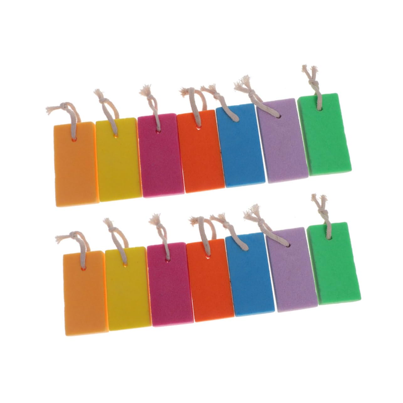 Package list: 18 x pumice stone. Features - Colour: Foot cleaner in different colours. Size: approx. 10 x 5 x 2 cm. Pedicure tools for feet. Material: PU pumice stone for feet. Foot Pumice Stone Great pumice stone for removing dead skin. Grinding Foot Tool Made of material, durable and practical for long term use of the foot scrubber. With bright color, with hanging rope, convenient for storing pedicure pumice stones. The rough grinding surface can effectively and quickly remove old and solid pedicure tools for feet. Smooth edge, strong lanyard, easy to store toilet cleaner. Foot stone. This is a set of 18-piece removers. Foot exfoliating tool in bright color, with a hanging rope, convenient for storage. Pumice stone say goodbye to cracked heels and unpleasant calluses. made of high-quality material, durable and practical for long-term use. Foot pumice stone scrub with rough grinding surface can remove old and solid items effectively and quickly