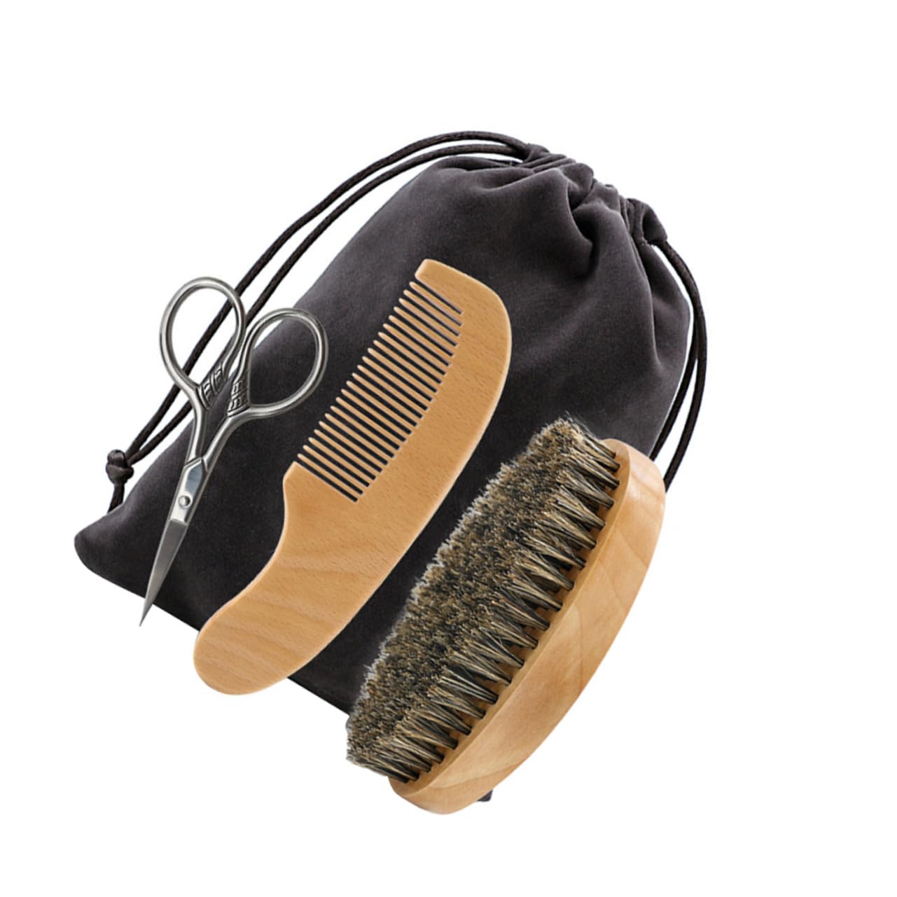 Razors for men-- made of supple material with comfortable touch feeling, the beard brush will not hurt your skin. Beard-- the beard caring set is a choice for that important bearded man in your life. -- bristle beard brush- 0the beard caring set is a choice for that important bearded man in your life. Beard caring tool-- the beard brush is novel in style and the brush body is thick and durable, convenient to take care of beards. Mens razors for shaving-- made of cloth and wood material for long time and durable use.