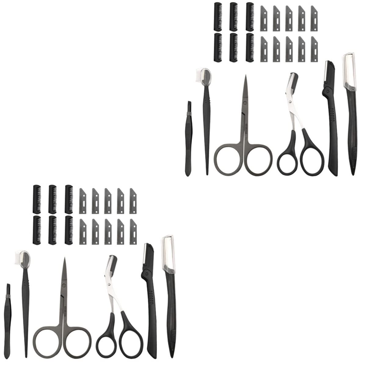 Package List 10 x blades 4 x eyebrow 6 x other tools Characteristics - Material: Stainless Steel and Plastic. - Size: About 12.70X4.20X0.30cm/4.99X1.65X0.12inch. - Suitable for home and , professional and practical, you can pluck your eyebrows safely. - It is easy to easy and convenient to storage and carry. - Color: Black. - Portable and lightweight that slips easily into pocket, purse, gym bag, suitcase. - It is made of material, which is and lasting for use. - It consists of various tools with which you could find it really easy to do your brows. Goods Information eyebrow grooming Unique design to achieve the balanced and stable use.Eyebrow Trimming Tool These item is eyebrow trimmer set.Eyebrow Razors Shavers Lightweight, easy to carry.Eyebrow Shaper Made of premium stainless steel and plastic, for long time use.Face Razor Suitable for professional using or personal using. Remove unwanted facial or eyebrow hair etc
