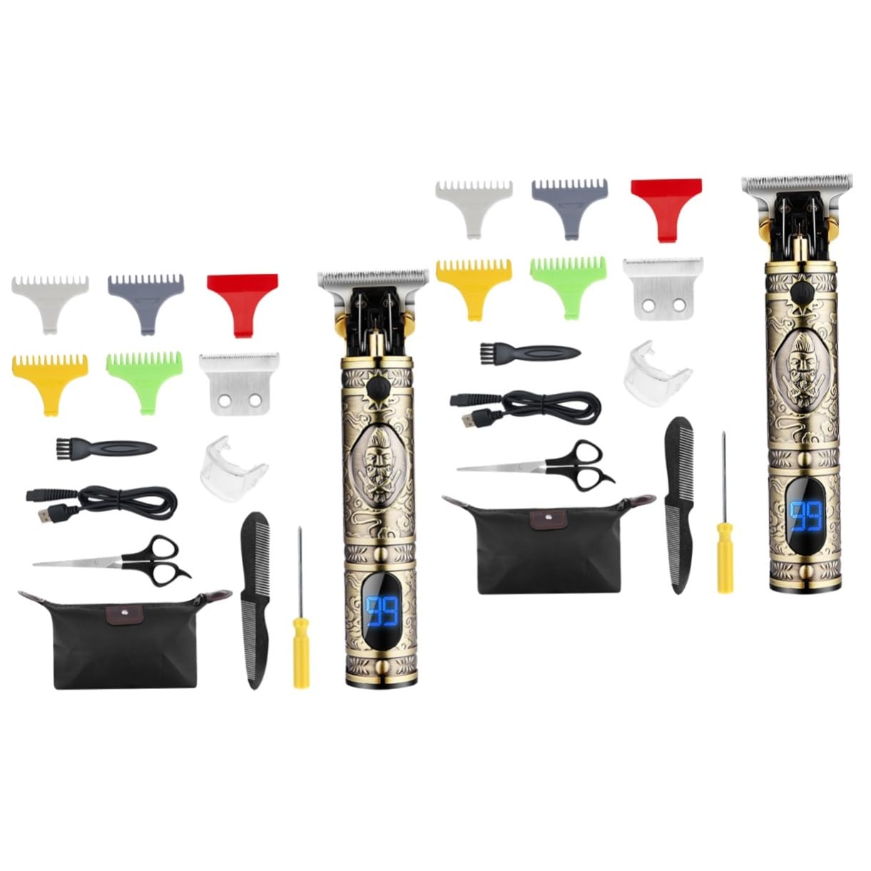 Package Include 2 x clipping 8 x combs 2 x spare 2 cover 2 x 2 x comb 2 x screwdriver 2 x storage bag 2 x cleaning brush 2 x USB charging cable 2 x protective cover 2 x manual Characteristics -Material: Stainless steel beard edgers for men Battery: 3 mens clippers. Power: 10W trimmer for men Charging time: 2 hours beard trimmer for men -Size:15.30X4.10X4.10cm/6.01X1.61X1 cordless clippers for men. -Color:As Shown trimmer - Stainless steel suspension bracket, blocking debris, will not block your eye of sight clippers cordless. - LCD display screen making it more visible of instant battery status clippers. Working time 180 minutes beard trimmer for men professional - Carving design clipper body, comfortable hand feeling and nonslip in use clippers. - Acute cutting, clipping your fast without jamming debris professional trimmer. - Every detail is carefully crafted, so you experience the high durability and practicality mens clippers. Goods Information mens trimmer The exquisite craftsmanship can serve you well without breaking easily.cordless clippers for men This is a very practical trimmer.mens clippers The trimmer is convenient and practical, with excellent texture, and without being easily damaged