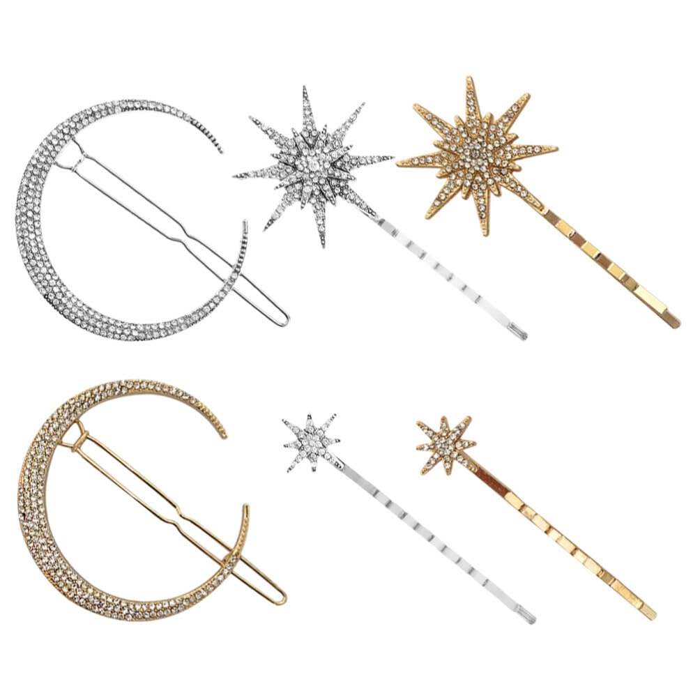Description The simple design of the star and moon hair clip shines with elegance and grace, making you vintage, sophisticated and unique. Lovely hair decorations. Suitable for long, short, straight and curly hair. Exquisite vintage gold hair clips make this headpiece perfect for weddings, parties, galas and casual. It can be used as a wedding, birthday, Christmas, Thanksgiving, anniversary for your beloved bride, mother, sister, friend, child Features -Color:Assorted Color -Material:Alloy -Size:5.60X4.60X0.50cm/2.20X1.81X0.20in -Convenient to Use: They are simple to use, simply push them into your hairstyle and adjust according to your hairstyle. The clips will match your charming wedding or formal dress and add a suitable amount of sparkle and charm to your hair. Package Including 6 x hair clips???Occasions: The exquisite vintage gold hair clips make this headpiece perfect for weddings, parties, evening events, and casual wear. ???Sweet : These rhinestone hair clips, metal hair clips, diamond hair clips are great accessories for brides and bridesmaids, and also make great for you and your friends. ???Packaging: You will receive 6 pieces of star and moon hair clips, including 2 moon hair clips, 2 large star hair clips, and 2 small star hair clips a great combination to meet your dressing needs. ???Unique Design: These clips feature a design with rhinestones, moon, and star shapes, looking exquisite and charming. The romantic moon and star shapes can highlight your hairstyle and are suitable for most hairstyles and outfits. ???Premium-Quality Material: Our moon hair clips are made of premium-quality materials and designed to be stable, durable, and not easily faded or rusted, making them unique and fashionable.