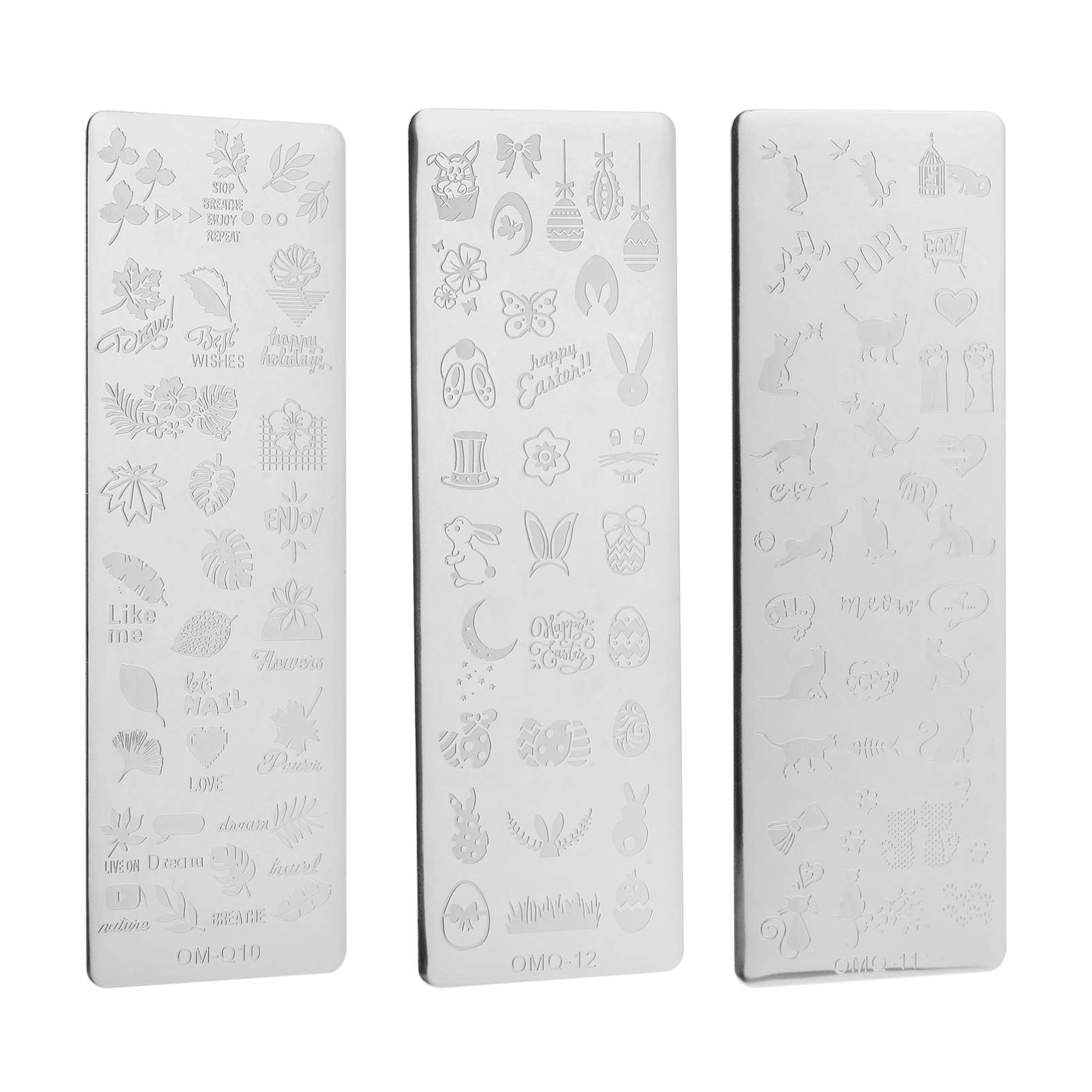 Description These beautiful Easter nail stamp templates are the perfect stamp plates for you.With these nail art templates sets you can make decorative nails in imaginative designs, also a nice Ester gift for your nail art lovers.These nail art manicure templates are designed for them. Functions - Color: as shown. - Material: alloy. - Size: approximately 12. 00x4.00x0.30cm 4. 72x1.57x0.12in. - Package includes 3 sheets of premium steel nail art stamp templates, Easter style, fashion and chic. - With different patterns of leaves, flowers, cats, rabbits, etc. you get countless different pictures for your nails. - Made out of alloy, durable and reusable.It is easy to use them for both beginners and nail professionals. - Easter sample design, perfectly complement your costume, fit the topic of Easter, add more festival atmosphere. - Excellent processing of this nail art transfer template, make your nail more beautiful and noticeable. Package included 3 x nail blemts Ingredients ingredients Alloymade out of alloy, durable and reusable.It is easy to use them for both beginners and nail professionals.Easter sample design, complete your costume perfectly, fit the topic of Easter, add more festival atmosphere.With different patterns of leaves, flowers, cats, rabbits, etc. you get countless different pictures for your nails.The package contains 3 sheets of premium steel nail art stamp templates, Easter style, fashion and chic.Excellent processing of this nail art transfer template, make your nail more beautiful and noticeable.Beschreibung Diese wunderschönen Osternagelstempelvorlagen sind die perfekten Stempelplatten für Sie. Mit diesen Nail Art Templates Sets können Sie schmückende Nägel in phantasievollen Designs herstellen, auch ein schönes Ester- Geschenk für Ihre Nail Art- liebenden Freunde. Diese Nail Art Maniküre- Vorlagen sind für Sie konzipiert. Funktionen - Farbe: Wie gezeigt. - Material: Legierung. - Size: Ungefähr 12. 00X4. 00X0. 30cm 4. 72X1. 57X0. 12in. - Paket beinhaltet 3 Blatt Premium Stahl Nail Art Stempelvorlagen, Ostern Stil, Mode und Chic. - Mit verschiedenen Mustern aus Blättern, Blüten, Katzen, Hasen usw. erhalten Sie unzählige verschiedene Bilder für Ihre Nägel. - Hergestellt aus Legierung, langlebig und wiederverwendbar. Es ist einfach, sie sowohl für Anfänger als auch für Nagelprofis zu verwenden. - Ostern Musterdesign, perfekt ergänzen Sie Ihr Kostüm, passen Sie zum Thema Ostern, fügen Sie mehr Festivalatmosphäre hinzu. - Hervorragende Verarbeitung dieser Nail Art Transfer Vorlage, machen Sie Ihren Nagel schöner und auffälliger. Paket inklusive 3 x Nagelprägeplatten INHALTSSTOFFE ZUTATEN AlloyHergestellt aus Legierung, langlebig und wiederverwendbar. Es ist einfach, sie sowohl für Anfänger als auch für Nagelprofis zu verwenden. Ostern Musterdesign, vervollständigen Sie Ihr Kostüm perfekt, passen Sie zum Thema Ostern, fügen Sie mehr Festivalatmosphäre hinzu. Mit verschiedenen Mustern aus Blättern, Blüten, Katzen, Hasen usw. erhalten Sie unzählige verschiedene Bilder für Ihre Nägel. Das Paket enthält 3 Blatt Premium Stahl Nail Art Stempelvorlagen, Ostern Stil, Mode und Chic. Hervorragende Verarbeitung dieser Nail Art Transfer Vorlage, machen Sie Ihren Nagel schöner und auffälliger.FRCOLOR 3 Stück Osternagelkunst Stempelplatte Ostern Hasen Eier Nagelkunstvorlagen Nageldesign Bildplatte für DIY- Druck Maniküre Salon