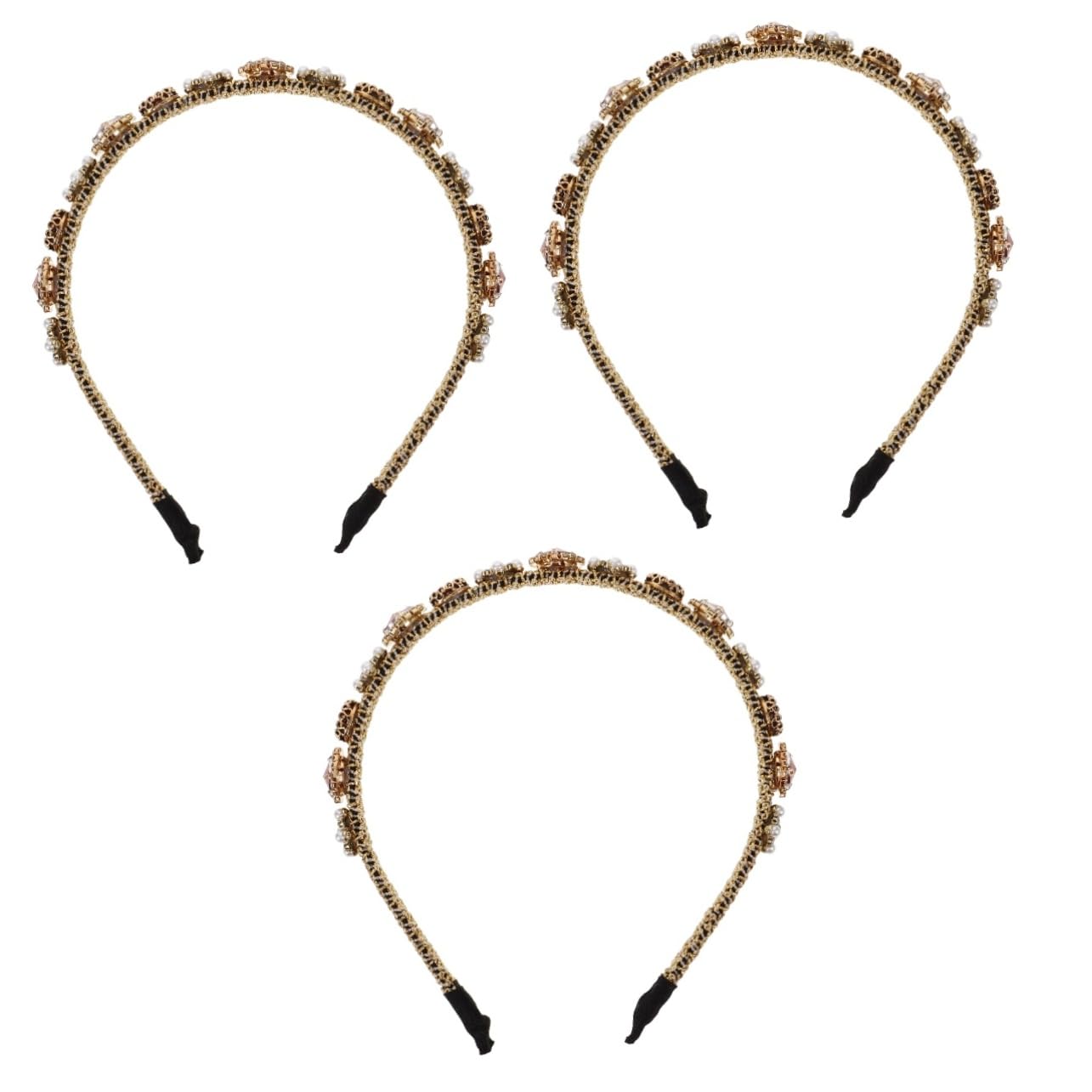FRCOLOR 3 Pieces Pearl Rhinestone Headband Headdress for Bride Glitter Headband Silver Gold Headband Golden Tiara Delicate Headwear Women Headband Hair South Korea Women Rhinestone Red