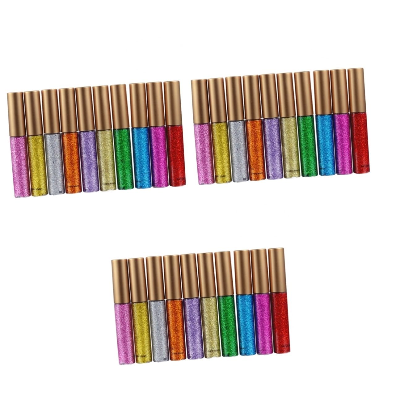 Package List 30 x Waterproof Eyeliner Glitter Pigmented Sparkling Metallic Liquid Glitters Eyeliner Characteristics - Size: 8 x 1.2 x 1.2cm (LxWxH) liquid . - Color: As shown metallic liquid eyeliner - Material: Chemical material eyeliner. - Goes on smoothly without skipping, smudging, or pulling Best black liner to create the cat eye glitter eyeliner. - The metallic glitter eyeliner provide you a shining shining eye, suitable for Halloween Makeup Party or other party shimmery eyeliner. - Uniquely lightweight, it glides on effortlessly, and then dries down smoothly, locking in maximum sparkle with minimal fallout, making you the eye-catcher in every occasion glitter . - for your friends and yourself liquid eyeliner. - Brilliantly long-wearing liquid sparkle eyeline glitter . - Each color is fully packed with blinding glitters for a truly unique look. Colors including silver, gold, blue, green, purple, hot pink and so on. Goods Information glitter eyeliner With 10 vibrant colors in this set and by using glitter, you can create so many looks you like, from subtle, natural to and exotic.shimmery eyeliner for the daily makeup look, special events or occasions. This and eyeliner set is a great way to add some sparkle to your look.liquid eyeliner Whether you want to just dress up your everyday look a bit, or craft an extra-special look for a night on the town, this set will have you coveredShimmery eyeliner: the metallic glitter eyeliner provide you a shining shining eye, suitable for halloween makeup party or other party. Glitter eyeshadow: uniquely lightweight, it glides on effortlessly, and then dries down smoothly, locking in maximum sparkle with minimal fallout, making you the eye-catcher in every occasion. Liquid glitter eyeshadow: brilliantly long-wearing liquid sparkle eyeline glitter. Metallic liquid eyeliner: each color is fully packed with blinding glitters for a truly unique look. colors including silver, gold, blue, green, purple, hot pink and so on. Eyeshadow: goes on smoothly without skipping, smudging, or pulling best black liner to create the cat eye.