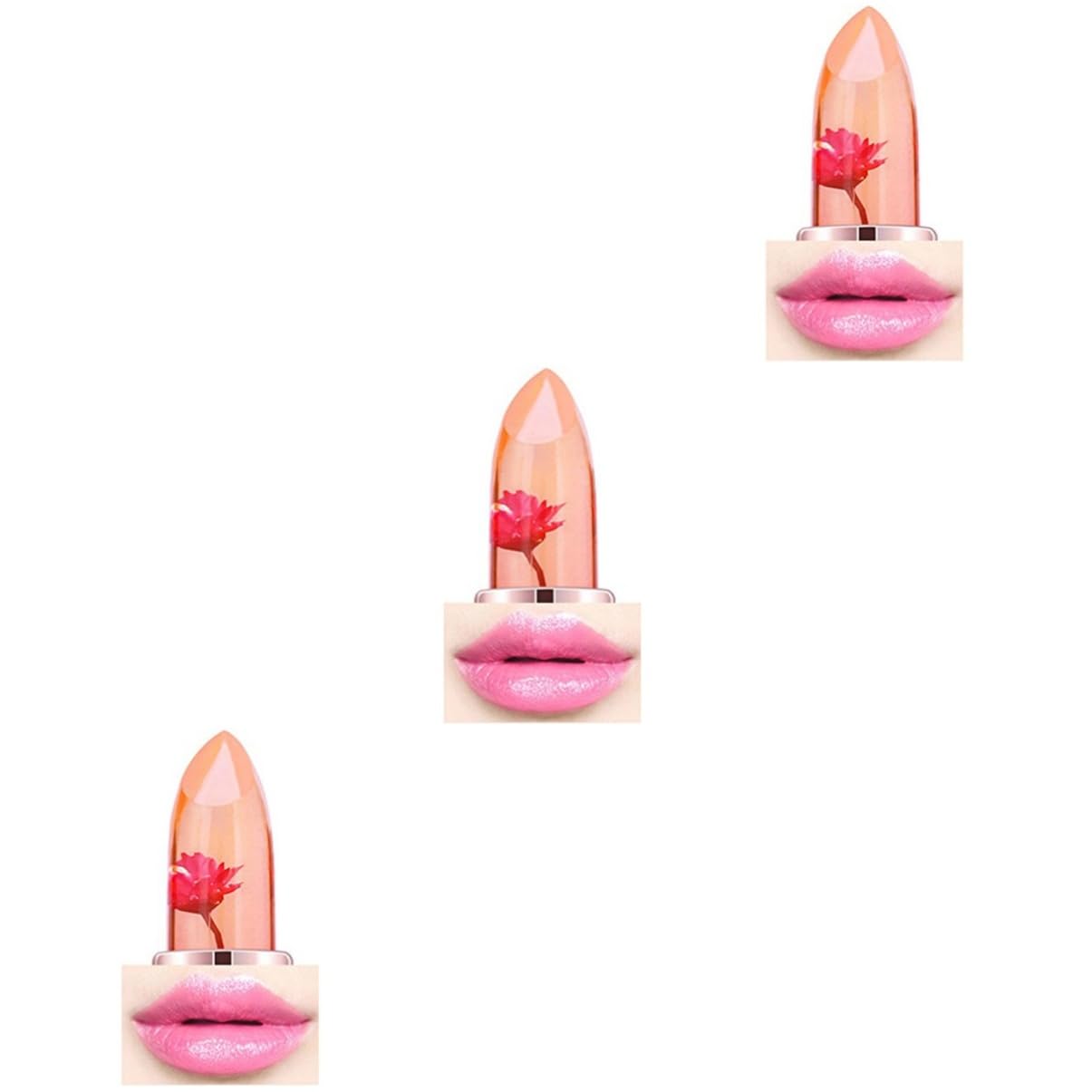 FRCOLOR 3Pcs Jelly Lip Stick Flower Lipstick Moisturizing Cream Lipstick Lip Gloss mediumx3pcs as shown x 3pcs