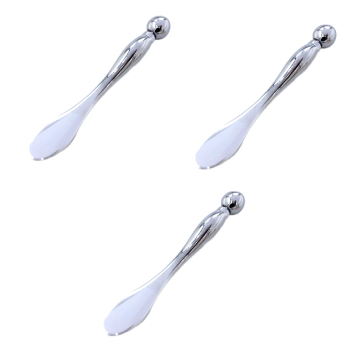 The package includes 3 x makeup spoons. Features: - Material: Zinc alloy massage roller. - Dimensions: Roller approximately 10 x 1.2 x 1.2 cm. - Color: Spoon. - Made of durable and safe zinc alloy, this eye massager can be used as an eye massager. - It can be used not only as an eye massager but also as a metal spoon, a skin cream dividing spoon, and a massage tool for applying cosmetics. - Mini spatula design, portable, compact, and easy to use. - Can be stored for a long time in a metal toolbox. - Unique design with two different ends: one end is a scoop for dispensing, while the other end is an eye massager, promoting eye product absorption and reducing eye puffiness. Product information: The eye roller massager, on the other hand, has a spoon end that can be used for dispensing without pollution. The eye massager has two different ends: one end is a spoon for scooping, while the other end is an eye massage applicator. This one-handed eye massager can relieve eye fatigue, tighten the skin around the eyes, and reduce wrinkles.