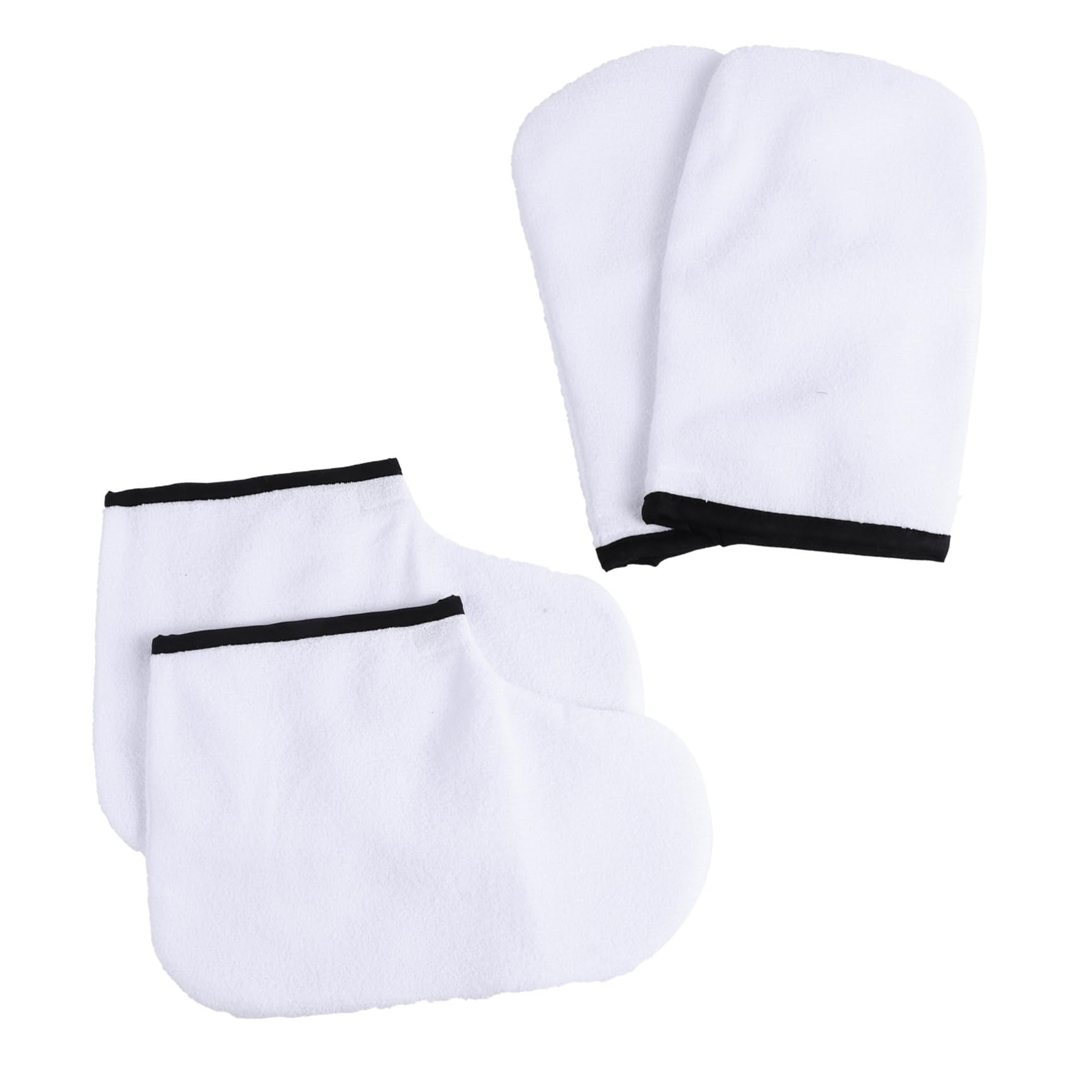 Contents: 1 pair of foot covers, 1 pair of hand covers. Features: - Material: polyester, heated flannel hand cover. - Color: white paraffin wax. Dimensions: approximately 25.50 x 15.00 x 1.00 cm (L x W x H). Hand wax. - Activates tissues, accelerates blood circulation, improves absorption. The moisturizing socks ensure healthy feet and hands. Made of durable, comfortable, eco-friendly, and lightweight paraffin wax. Keep your hands and feet warm with the warm paraffin so that the paraffin wax has a nourishing effect and penetrates your skin. Retains heat and better penetrates nutrients, thus maximizing the benefits of the hand covers thanks to the paraffin wax bath. Enhances the effect of moisturizers with these covers, you can enjoy paraffin at home as if you were in a hair salon. : Spa mittens. This ensures that the gloves and pads securely cover your arms and ankles without any risk of slipping. The moisturizing gloves fit comfortably on your hands and feet and are comfortable to use. These heated gloves are perfect for hair salons, paraffin wax treatments, spas, and DIY projects.Manicure set: Made from durable, comfortable, and lightweight materials. Paraffin wax for feet: Keep your hands and feet warm with the warm paraffin wax so the nutrients penetrate your skin effectively. Paraffin wax for hands: Made of polyester and flannel, it doesn't tear easily and provides a warming effect. Children's mittens: You can use them for hand and foot care at home. Apply moisturizing cream or hand and foot cream. Paraffin wax mittens: Enhance the effect of moisturizing creams with these mittens, you can enjoy a salon-quality paraffin treatment at home.Contenu : 1 paire de couvre-pieds, 1 paire de couvre-mains. Caractéristiques : - Matériau : polyester, couverture de main chauffée en flanelle. - Couleur : cire de paraffine blanche. Dimensions : environ 25,50 x 15,00 x 1,00 cm (L x l x H). de cire pour les mains. - Active les tissus, accélère la circulation sanguine, améliore l'absorption. Les chaussettes hydratantes assurent un sain des pieds et des mains. Fabriquées en cire de paraffine durable, confortable, respectueuse de l'environnement et légère. Gardez vos mains et vos pieds chaud avec la paraffine chaude pour que les en cire de paraffine aient un effet nourrissant et pénètrent dans votre peau. Conserve la chaleur et pénètre mieux dans les nutriments, maximisant ainsi le des semelles pour les mains grâce bain de cire de paraffine. Renforce l'effet des hydratants, avec ces housses, vous pouvez profiter du à la paraffine à la maison comme dans un salon de coiffure. Description du produit : Moufles de spa. Cela garantit que les et les couvrent fermement vos bras et vos chevilles sans craindre qu'ils ne glissent. Les hydratants s'adaptent confortablement à vos mains et pieds et sont confortables à utiliser. Moufles chauffantes, parfaites pour le salon de coiffure, le bain de cire de paraffine, le spa le bricolagede manucure : fabriqués à partir de : durables, confortables et légers. Cire de paraffine pour les pieds : gardez vos mains et vos pieds chaud avec la paraffine chaude afin que les nutriments pénètrent bien dans votre peau. Cire de paraffine pour les mains : en polyester et flanelle, ne se déchire pas facilement, effet de thermique. Moufles pour enfants : vous pouvez les utiliser pour le soin des mains et des pieds à la maison. Appliquez une crème hydratante une crème pour les mains les pieds. Moufles en cire de paraffine : renforce l'effet des crèmes hydratantes : avec ces enrobes, vous pouvez profiter du traitement à la paraffine à la maison dans le salon.FRCOLOR 4 Pièces Mitaines et Protège-pieds Cirés pour Soins des Mains avec Paraffine et Bain Chaud Réutilisables