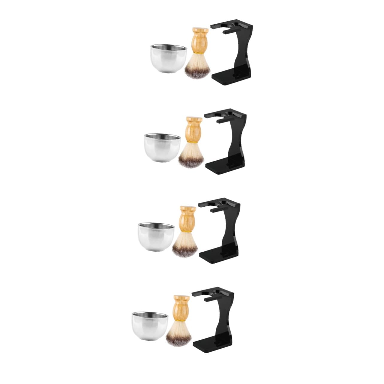 FRCOLOR 4 Sets Shaving Set Black Suit for Men Personal Shaving Shave Brush Stand Facial Kit for Men Husband Comfortable Shave Brush Desktop Shaving Cup Man Acrylic Metal Razor