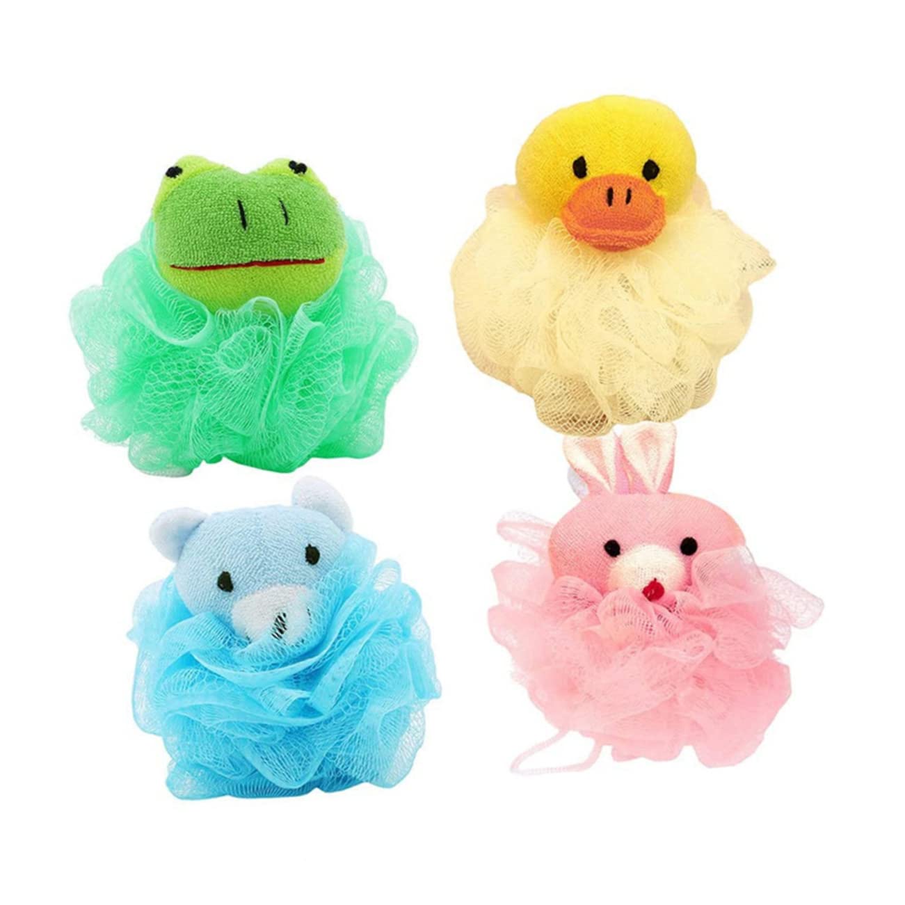 Sponge-- they will not cause irritation to the skin, leaving the skin with a healthy and natural glow. Bath exfoliating-- a set of four shower puff ball s can meet your daily needs. Animal shaped bath-- exquisite workmanship, will not be scattered easily. Bathing loofah-- a set of four bath balls can meet your daily needs. Exfoliating body puff-- can gently exfoliate and scrub the body to remove dead skin cells.