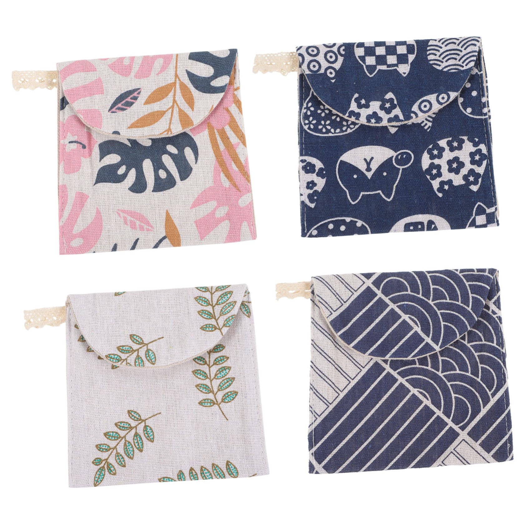 Package Include 4 x Napkin Bags Features -Material:Cotton,linen tampon organizer for bathroom -Color:Assorted Color period bags for female -Size:12.50X12.20X0.30cm/4.91X4.79X0 Period bag. -Period Bag can preserve your menstrual pad from dust and some and keep it in good condition small period bag. -Suitable for the storage of small items such as lipsticks, small earphones, and change tampon holder. -Practical zipper design makes opening and closing more convenient and comfortable napkin holders. -Manufactured with good materials, practical and durable, it can be used for a long time pad storage bag. -The workmanship of this bag is perfect, and you will have a good experience in using it pad bag. Goods Description period bags for female Washable, light and durable, not easy to break, and long service life. pads pouch Very beautiful design and chic colors, this small bag is perfect for ladies and girls.tampon holder The small Period Bag is convenient to carry and are very suitable for travel, shopping, etc.tampon bag Manufactured with good material