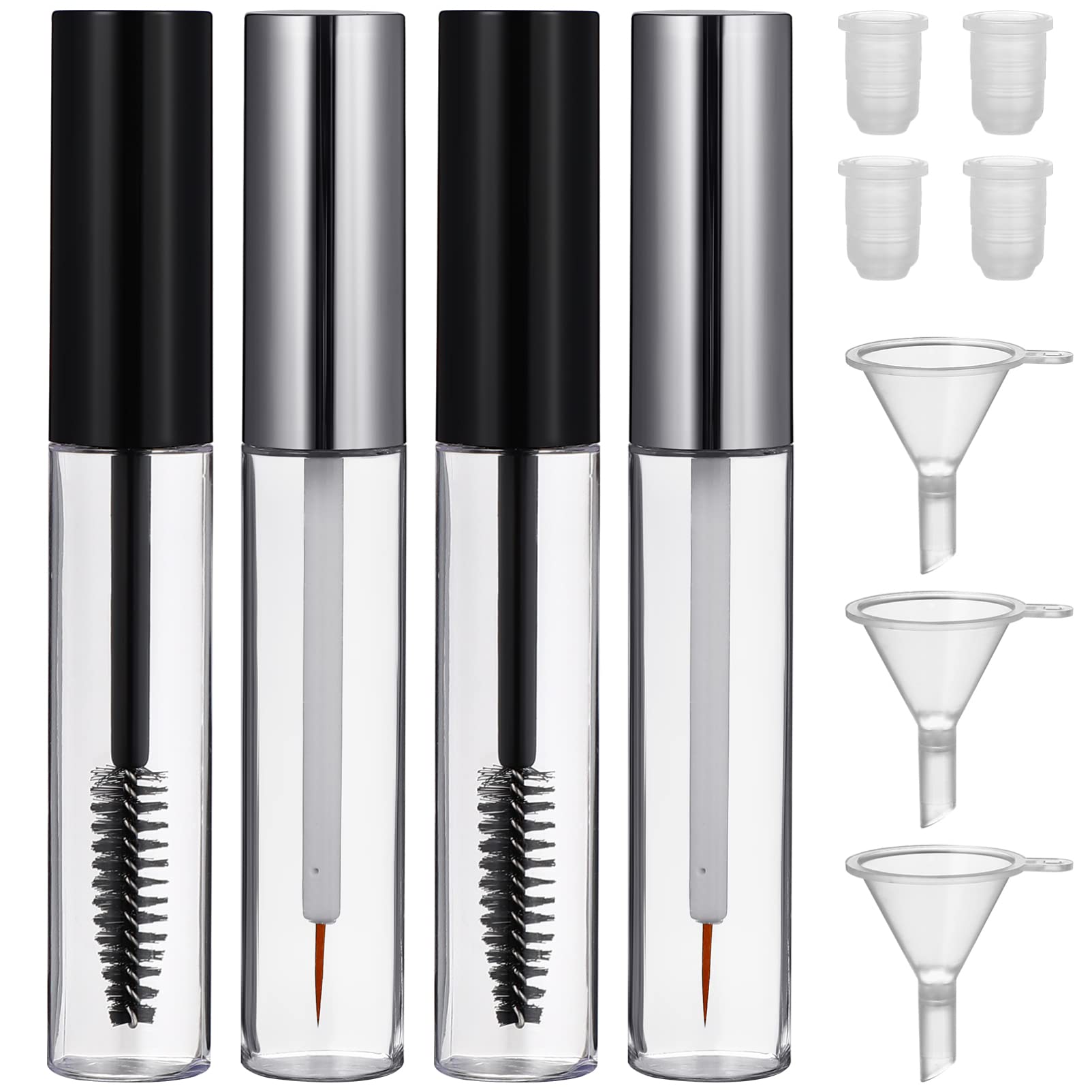 Description 6 Pcs 10ML Empty Mascara Tubes Eyeliner Tubes Set with Wand Mascara Containers Eyelash Serum Tubes Eyeliner Bottles with 3 Pcs Funnels Features -Color: As shown -Material: Plastic -Size: About 10.50X1.70X1.70cm 4.13X0.67X0.67in -Capacity: 10mL Wide range of application: the eyelash brush tube and eyeliner tube can be applied for eyelash and eyebrow serum, suitable for travel and business trip Good choices for beginners to practice, daily use or makeup artist makeover Plastic funnel: the eyelash brush tube and eyeliner tube combination comes with little funnels, so you can easily put mascara into the bottle, and won't let you waste your products, easy to access Package Including 6 x Empty Tubes 3 x FunnelsTransparent design: The body design of the empty mascara tubes bottle allows you to clearly see the remaining amount of mascara. Eyelash Brush Tube is suitable for different occasions: Parties, shopping, travel, business trips, a good choice for beginners to practice and make-up artists. Multiple uses: Empty dispensing Eyelash Tubes bottles can be applied to hold eyelashes, eyebrow serum, lip gloss. Costume Eyelash tubes with wand: These empty tubes with wand can help you apply mascara, or eyeline evenly and easily. Sealed design: The caps on these Mascara tubes seal tightly to prevent air from entering and destroying the inside contents purity.