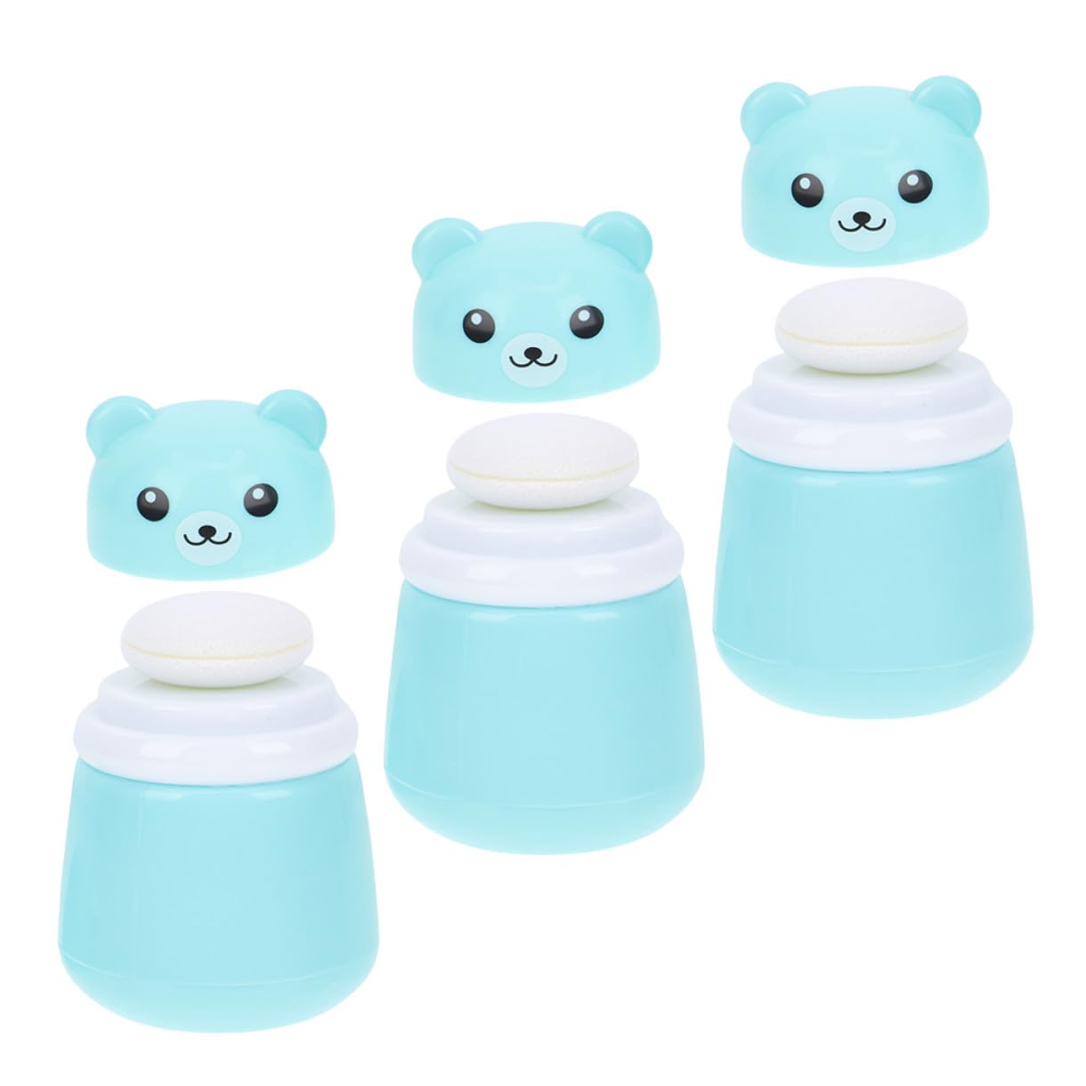 FRCOLOR Boîte à Poudre pour Bébé Houppette Douce, Étui Portable Anti-fuite 3 Pièces Bleu, Compact et Réutilisable pour Soins Peau, Voyage et Usage Quotidien