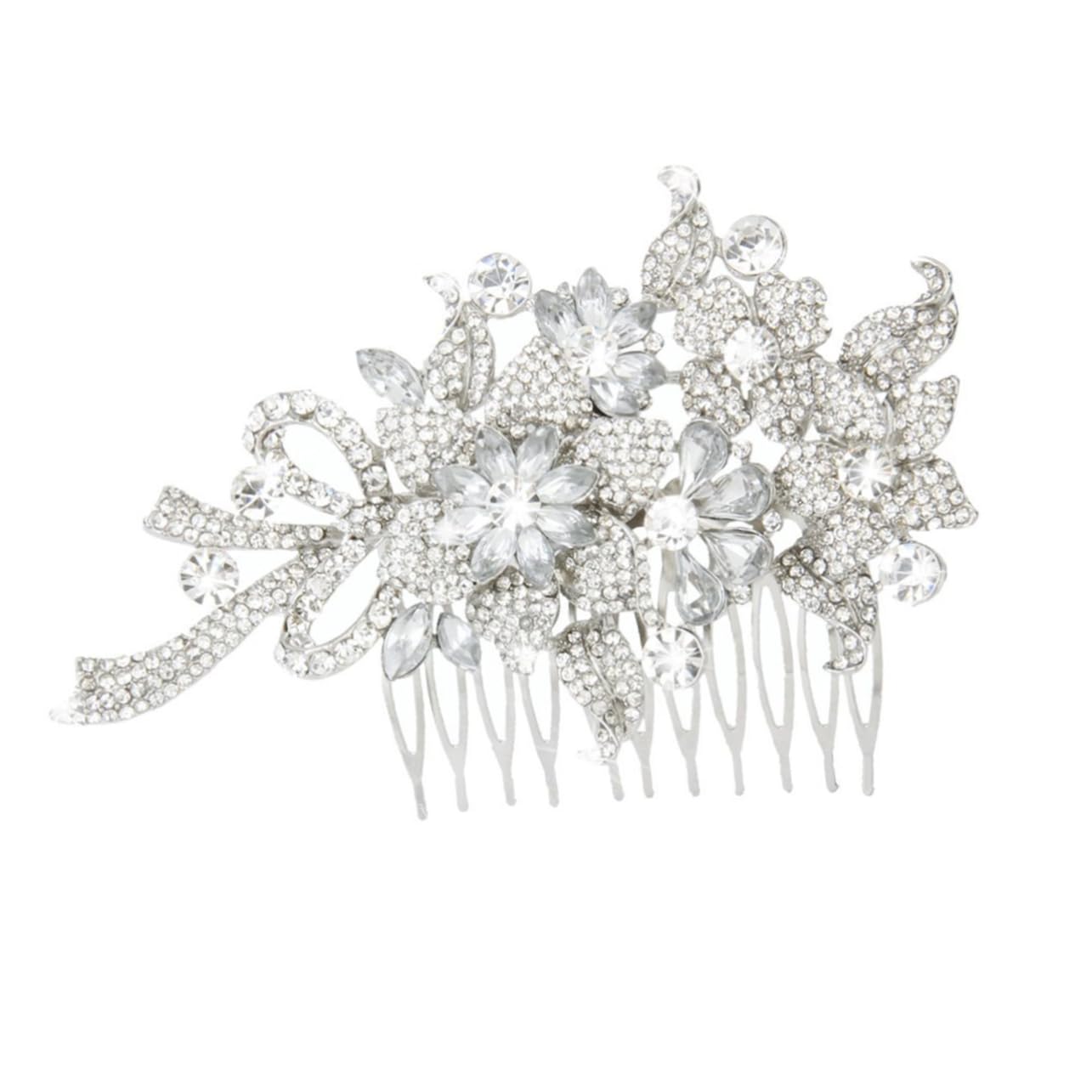 Package Include 1 * Bridal Wedding Flower Bowknot Style Rhinestone Hair Comb Hair Accessories Features - Size: about 10.5* 7.5cm /4.13* 2.95 inch. Women hair clip. - Color: mainly silver Bridal hair comb. - Material: hard alloy, rhinestone. - Fantastic hair accessories for Weddings, Proms, Parties or other special occasions Bowknot hair comb. - The hair comb is easy to get in the hair and will assure a snug fit on various hair styles Women hair comb. - It makes your look noble and add your charm Flower hair comb. - Crystal rhinestones decor flower and bowknot style alloy hair comb clip hair pin, very delicate and charming. - and Wedding Crystal Rhinestone Decor Flower Bowknot Style Hair Comb. - Works great with any hair styles for women of all ages. Goods Description wedding hair accessories for women it will be a great for women who are into fashion trend.Women hair comb Besides, the hair comb clip is easy to get in the hair and will assure a snug fit on various hair styles.Bridal Hair Side Comb The item is a fashion and delicate women's girls hair comb clip, which is mainly made of durable hard alloy material, and features crystal rhinestones decor flower and bowknot design to make it more unique and charming