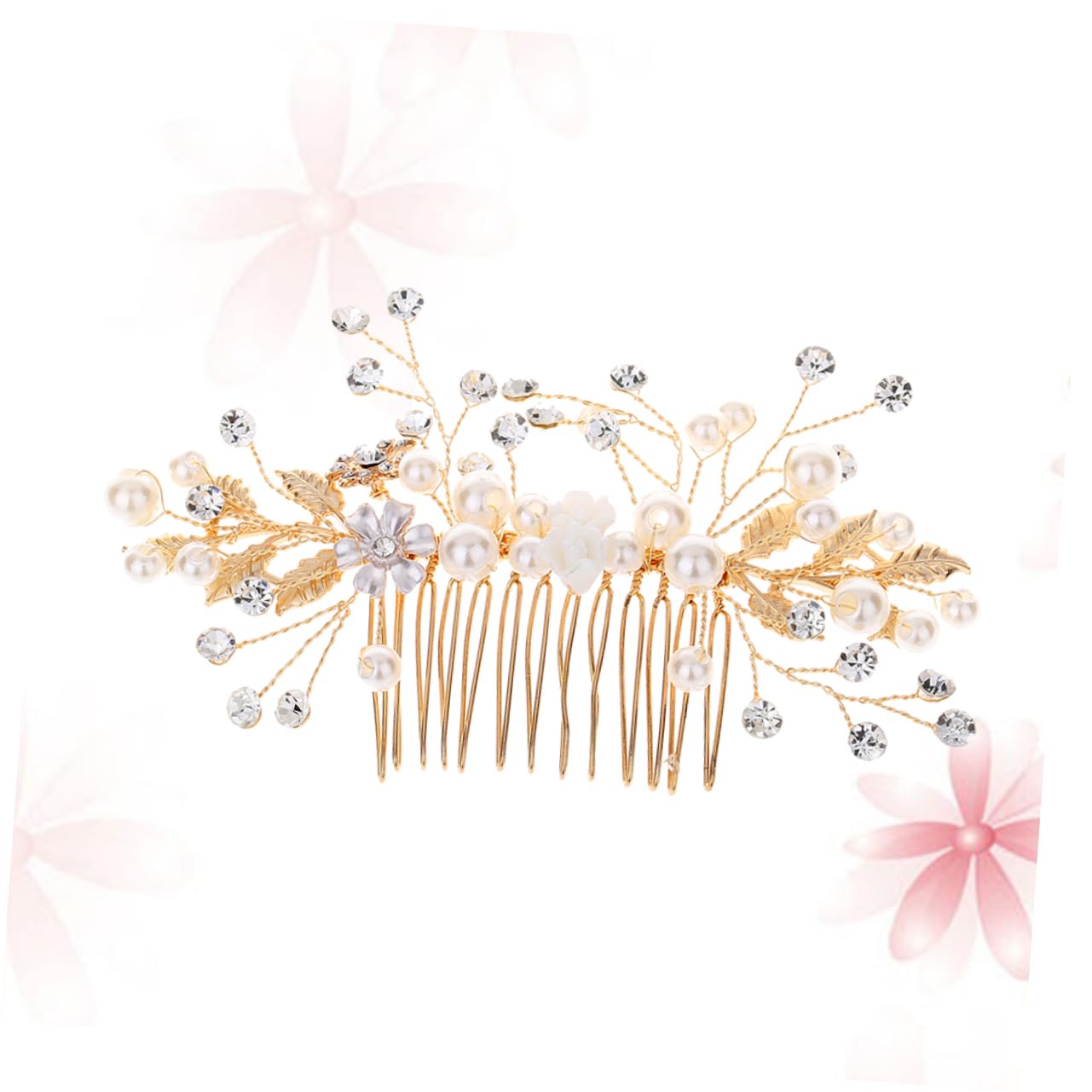 Package List 1 x Hair Comb Features - Material: Alloy Bridal Headwear. - Size: 12x7x0.2cm Rhinestone Comb. - Color: Golden Pearl Hair Comb. - Fashion design custom wedding hair accessories will decorate you elegant and beautiful Flower Hair Jewelry. - This wedding hairpiece looks gorgeous in almost any wedding day hair style. Special for wedding, party, prom, party, engagement, anniversary, prom or other special occasions Crystal Headpiece. - Handmade Bridal Hair Combs with crystal for wedding, party and evening. Goods Information Flower Hair Jewelry It's easy to put into the hair and take out.crystal hair comb Slip beautiful blooms into your tresses.bridal headpiece Lovely pearl flowers and delicate wired sprays of clear rhinestones create a subtle, feminine accent for your bridal hairstyle