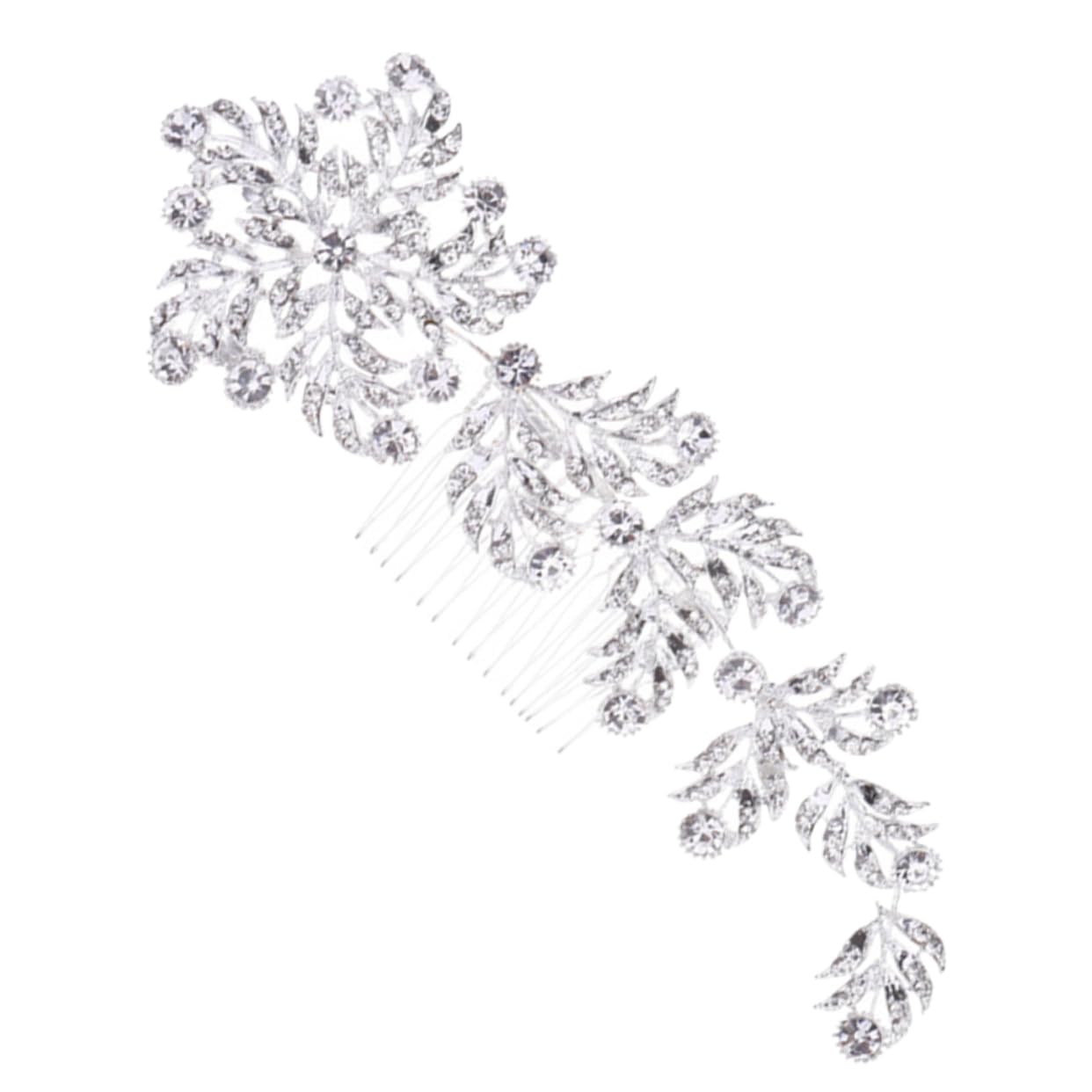 Package Include 1 x hair comb Characteristics -Size: 20.00X9.00X2.00cm/7.86X3.54X0 bridal rhinestone insert comb. -Material: Alloy bridal hair comb -Color: Silver bridal hair side comb - A nice addition to your wedding dress, make your hair style look more charming crystal hair accessories. - Eye-catching hair comb for women, girls and ladies. Make you so stand out in the crowd or the party rhinestone hair piece. - Hold hair tightly without pulling your hair, don't worry about the situation that the headdress drop down suddenly crystal hair comb. - This hair comb is skin friendly, durable and sturdy, support long time of use and give you a good using experience crystal hair side comb. - Delicate, attractive, elegant and fashionable hair comb, highlight your appearance sparkly hair piece. Goods Information bride hair accessories It presents a sparkly, stunning, elegant, chic, charming and eye-catching look, easily catching people's attention.rhinestone headpiece Perfect assembly of chic shape and crystal decorations make it look more beautiful.flower hair accessories Suitable for most brides and bridesmaid to use