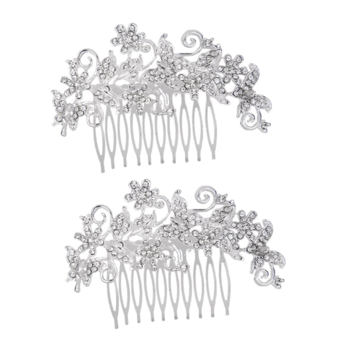 Package includes: 2 x bridal bridesmaid rhinestone hair comb slide clip hairpiece. Features Material: rhinestone crystal headpiece. Size: 11 x 7 cm (L x W), vintage crystal bridal headpiece. Colour: Silver Wedding Tiara Suitable for daily use or special occasions such as wedding, prom, anniversary bridal tiara. The stunning hair comb gives your look a classy look and gives it the charm of a vintage hair comb. Fantastic hair accessories for weddings, proms, parties or other special occasions, rhinestone headdress. Product Information Vintage hair comb. The item is a fashionable and delicate hair comb for women and girls, which is mainly made of rhinestones and features crystal rhinestones to make it more unique and charming. This is a bridal headpiece. Suitable for everyday use or special occasions such as wedding, prom, anniversary