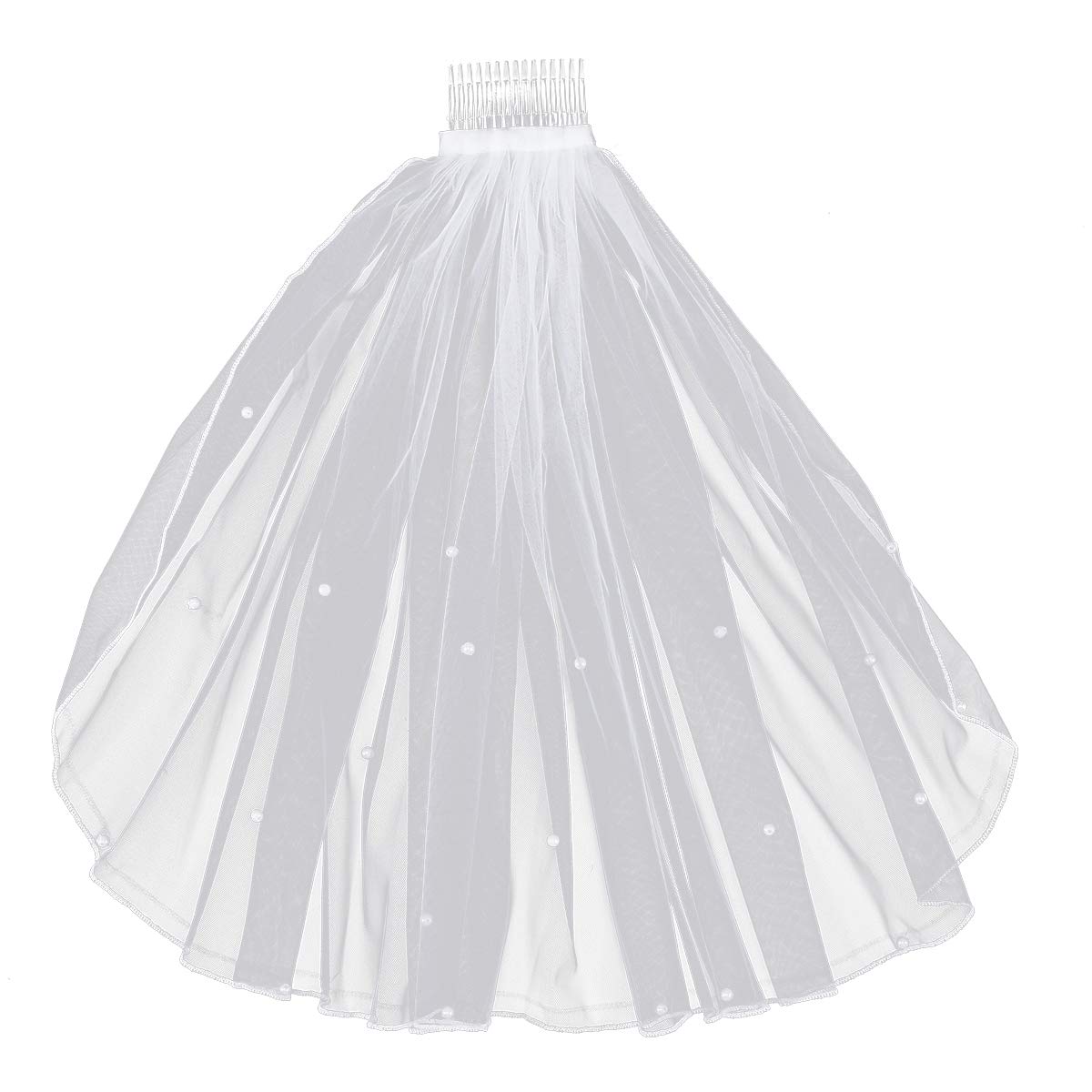 FRCOLOR First Communion Veil for Girls 16 Inch Short Veil with Hair Comb Peal Wedding Flower Girl Veil Hair Accessories for Girls