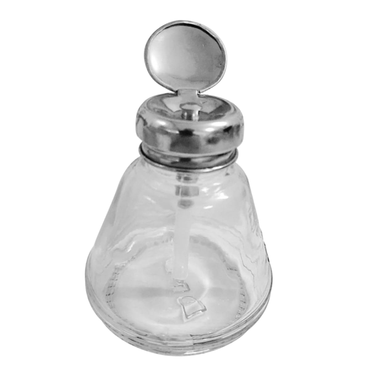 Package List 1 x Empty Bottle Features - Color: Clear nail polish bottles. - Material: Glass, metal nail polish remover bottle. - Size: Approximately 9.5 x 8 x 8 cm. - It is used to rinse water off nails. Press the neck of the bottle for easy dispensing. - With a longer straw, the pump can dispense the liquid into this liquid storage bottle. - The dispenser prevents wasting too much liquid. - Made from durable material. - Portable and easy to carry. Lockable Pump Dispenser: This bottle is designed to dispense your nail polish remover. Even if you forget to lock it and accidentally drop the bottle, you won't waste nail polish remover. It's just a dispenser. Push-down pump bottle the locking design prevents accidental activation. SAFETY WARNING 1