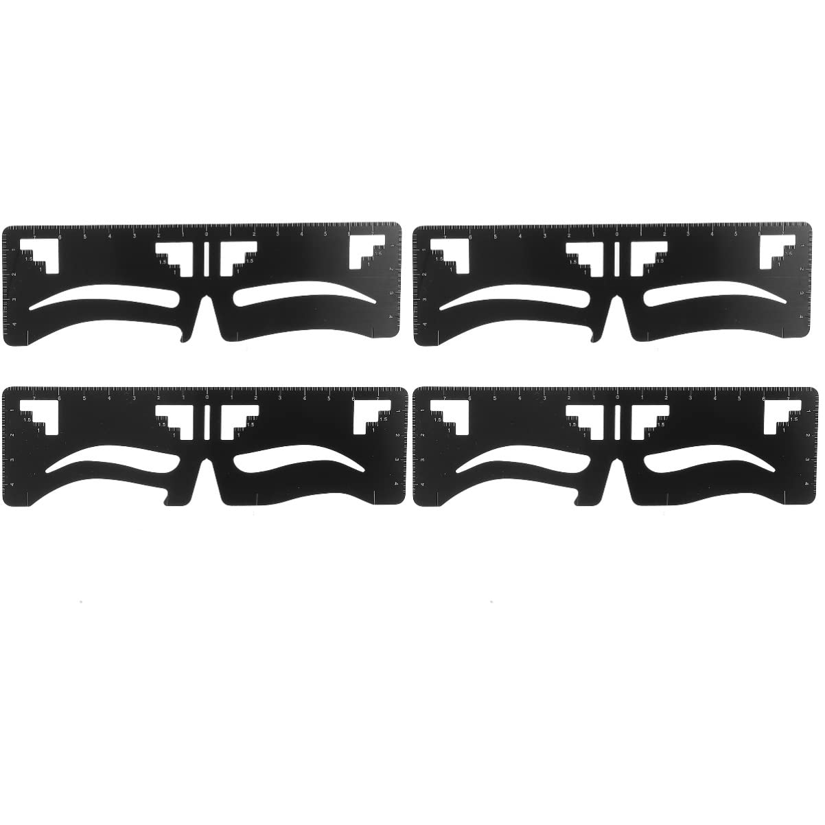 Contents: 4 eyebrow molds Features: - Color: Black - Material: Stainless steel - Dimensions: Approximately 16.50 x 5.00 x 0.10 cm - Free your hands you can use the tool more freely, whether you're a beginner or an experienced beauty artist. - The finish of our product ensures a long lifespan and delicate details. - This eyebrow shaping tool can be used for shaving, measuring eyebrows after shaving, and also for designing the eyebrow frame. - Compact and easy to store when not in use, it's also suitable for [unclear - possibly "home use"]. - With its fine finish, you can use our product yourself and present it to your friends and family. : This eyebrow ruler tool can shorten your makeup time. Free your hands you can use the eyebrow pencil and trimmer more freely. This eyebrow master is well-designed for all people and face shapes.