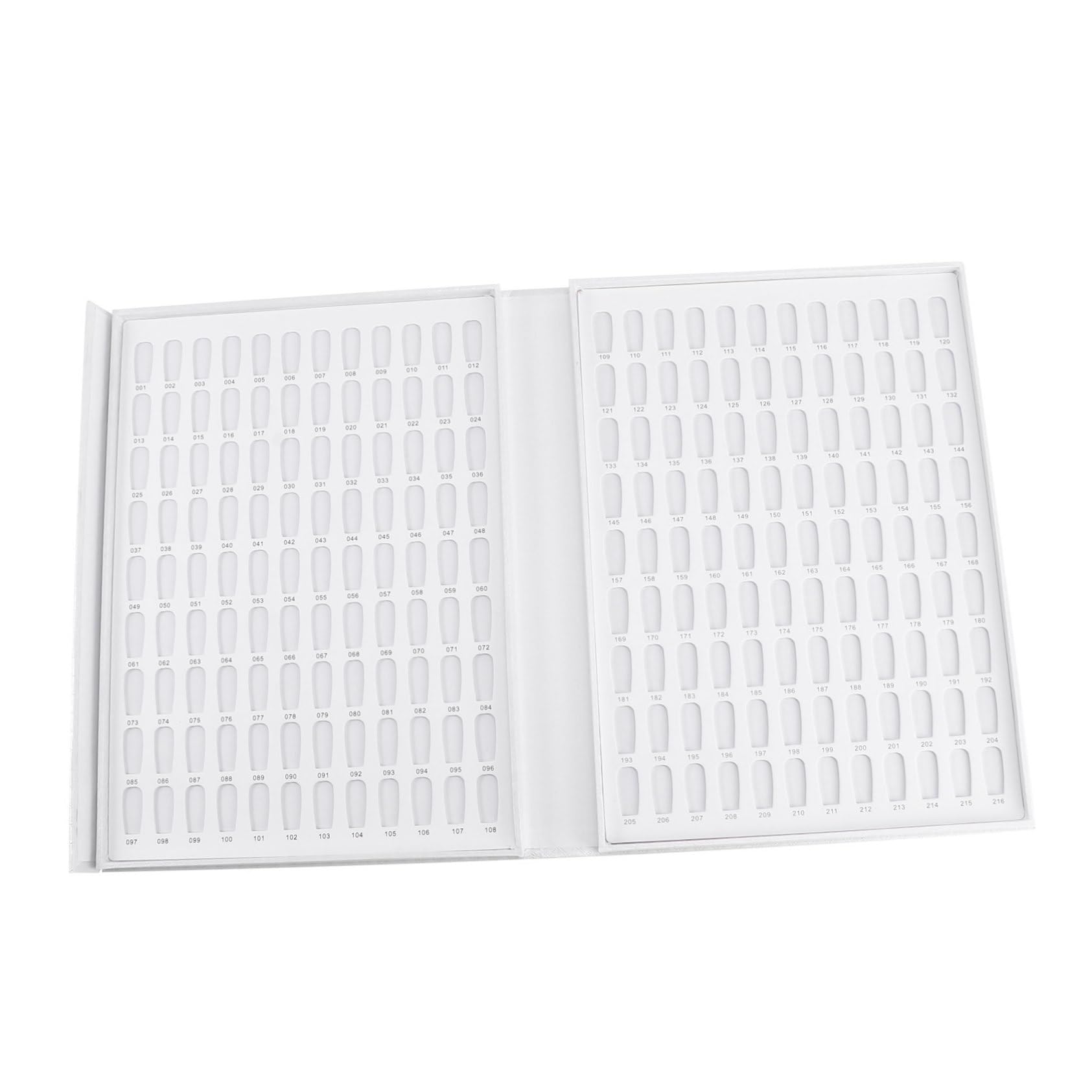 Package List 1 x Color Features - Color: White nail sample sticks. - Size: Approximately 29x22x3cm nail book. - Material: Paper nail color book. - Suitable for nail art salons, manicures, pedicures, and nail polish color charts. - Create a color display chart easily find the bottle you're looking for by color number. - Easily display your nail polish. Easy to carry take it with you like a color chart book. - For displaying UV gel colors can display 216 different colors for round nail displays. - Dedicate a professional look for yourself and your clients enjoy displaying nail colors. Product Information Nail Sample Sticks This item is a removable display stand for nail tips and nail polish, made of durable material, capable of holding approximately 216 pieces of false nails. It displays the available nail polish colors on nail art tips for easy access and selection. SAFETY WARNING 1