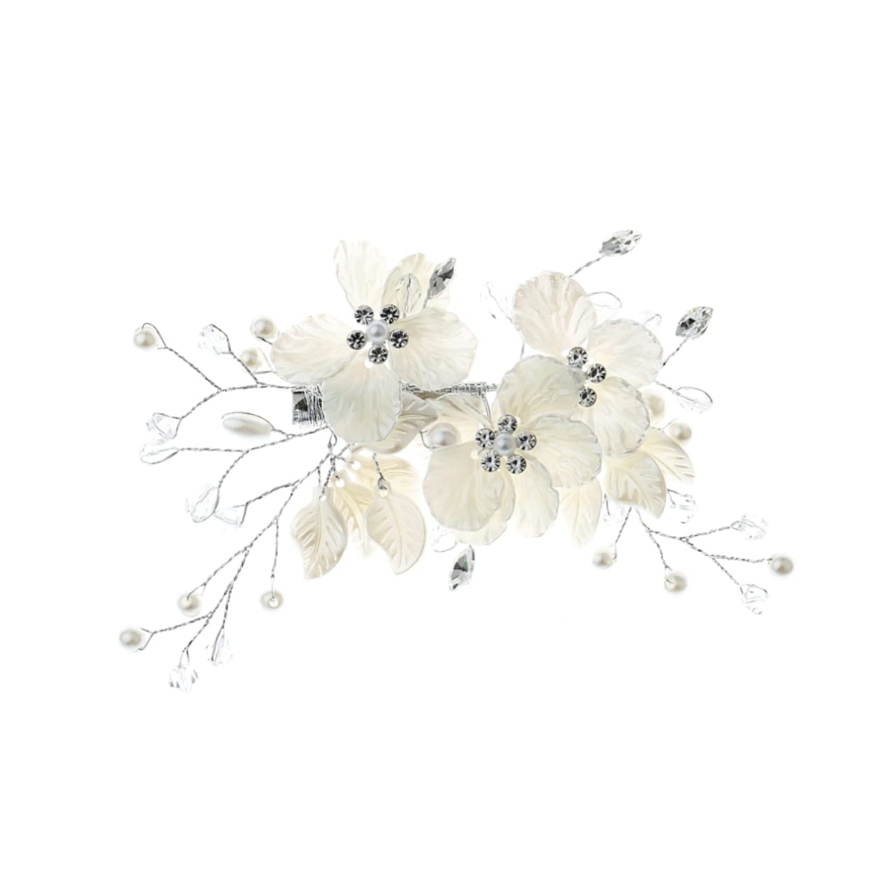 Package List 1 x wedding hair clip Characteristics - Size: About 14x5x1cm flower hairpin. - Color: White Acrylic Flower hair clips. - Material: Alloy and acrylic Wedding Hair Accessories. - Warm tip: Dear buyer, Due to lighting effect, monitor's brightness, manual measurement and etc, there could be some slight difference in the color and size between the photo and the actual item Bridal Hair Clips. - New and Pearl and crystal Hair clip for bride and princess Pearl alligator clips. - Simple and practical design, and easy to use bridal hair clip. - Decorated with pearl and crystal to make it more beautiful and attractive Crystal Hair Pins. - Wearing this flower hairpin in some occasions, you will look more charming and graceful Diamond Hair Pins. - Suitable for most women, ladies and girls to wear Pearl Hair Pins. Goods Description wedding headpiece for bride Therefore, wearing the leaf pearl hairpin in some occasions, you will look more charming and graceful.alloy hairpin The item is a simple and delicate bridal flower hair clip, which is mainly made of durable material and decorated with pearl and crystal just like a flower to make it more beautiful and attractive