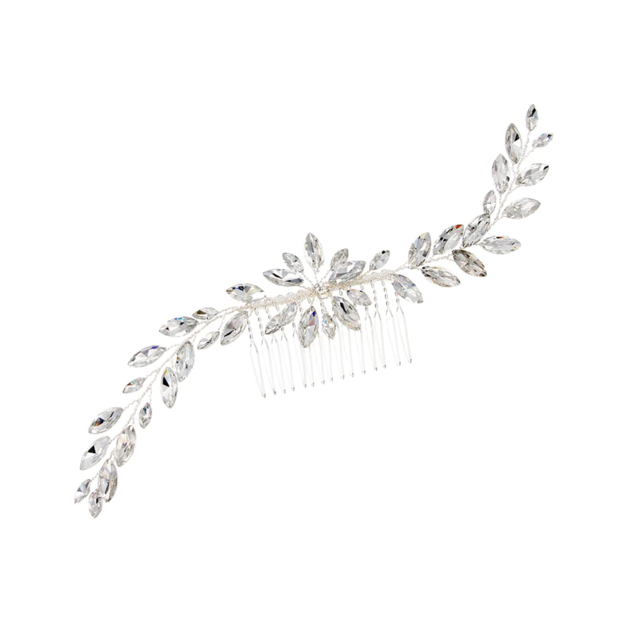 Package List 1 x Bridal Hair Comb Characteristics - Material: Alloy wedding headpiece for bride. - Size: about 21x5x1cm Bridal Headdress. - Color: Silver Women Comb Jewelry. - This wedding hairpiece looks gorgeous in almost any wedding day hair style rhinestone hair clip. - Designed for versatility, this wedding hair accessory can be adorned in an updo or can be worn to delicately frame a half up and down hairstyle rhinestone headpiece. - Delicate crystal brings you a unique sense of beauty, leaving a deep impression Bride Insert Comb. - Handmade hair combs accessories for brides and bridesmaids, available in beaufiful color Bridal Rhinestone Headpiece. - The wedding hair accessories are suitable for any wedding party theme. Special for wedding, party, prom, party, engagement, anniversary or other special occasions Wedding Headpiece. Goods Information rhinestone headpiece bride, bridesmaid, flower girls or wear it to a party.Bridal Rhinestone Headpiece This exquisite designed hair comb is a perfect alternative for headpiece such as crown, tiara or headband.rhinestone hair accessories This bridal hair comb is made of alloy and beautiful crystal with of plating color