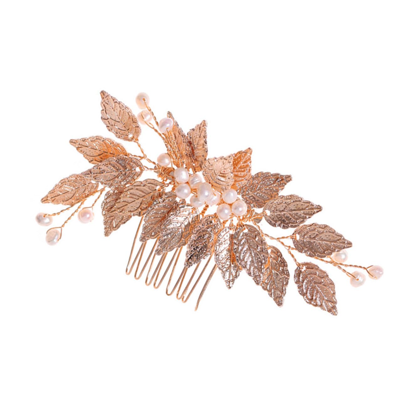 Package List 1 x hair comb Features - Size: 10.00X4.50X2.00cm/3.93X1.77X0 bride accessories. - Color: Golden Hair Comb for Bride - Material: ABS, iron, zinc alloy wedding hair jewelry - This stunning headpiece is a accessory for weddings, parties, proms and more! bridesmaid hair accessories - This beautiful headdress fits every occasion, such as weddings, dinners, dances and more wedding bride headdress. - Add more attractions to your outfit and you will become more eye-catching and attractive after wearing them wedding head jewelry. - Elegant style design with beautiful appearance, making you more eye-catching leaves hair comb. - Delicate pearl and leaves design brings you a unique sense of beauty, leaving a deep impression Wedding Hair Comb. Goods Information pearl wedding hair accessories Made of sturdy metal material with great workmanship.hair comb for women The elegant and gorgeous design of this hair comb will ensure its practicability and popularity among headpieces decoration.hair gems for women The exquisite structure and craft make it looks unique and distinctiveWedding bride hair comb-- you can wear this hair comb for a special event, wedding, honey moon, engagement, anniversary, etc.headpiece. Bride hair comb-- suitable for wedding, festivals, holiday, theme parties, cosplay parties, dancing parties and every day hair decoration. Leaves hair comb-- you can wear this hair comb for a special event, like wedding, honey moon, engagement, anniversary, etc. Accesorios para mujer-- design hair comb bridal hair accessory, exquisite decoration make this hair comb luxurious and stunning. Tiaras for women-- made of , chic and fashionable for big day.