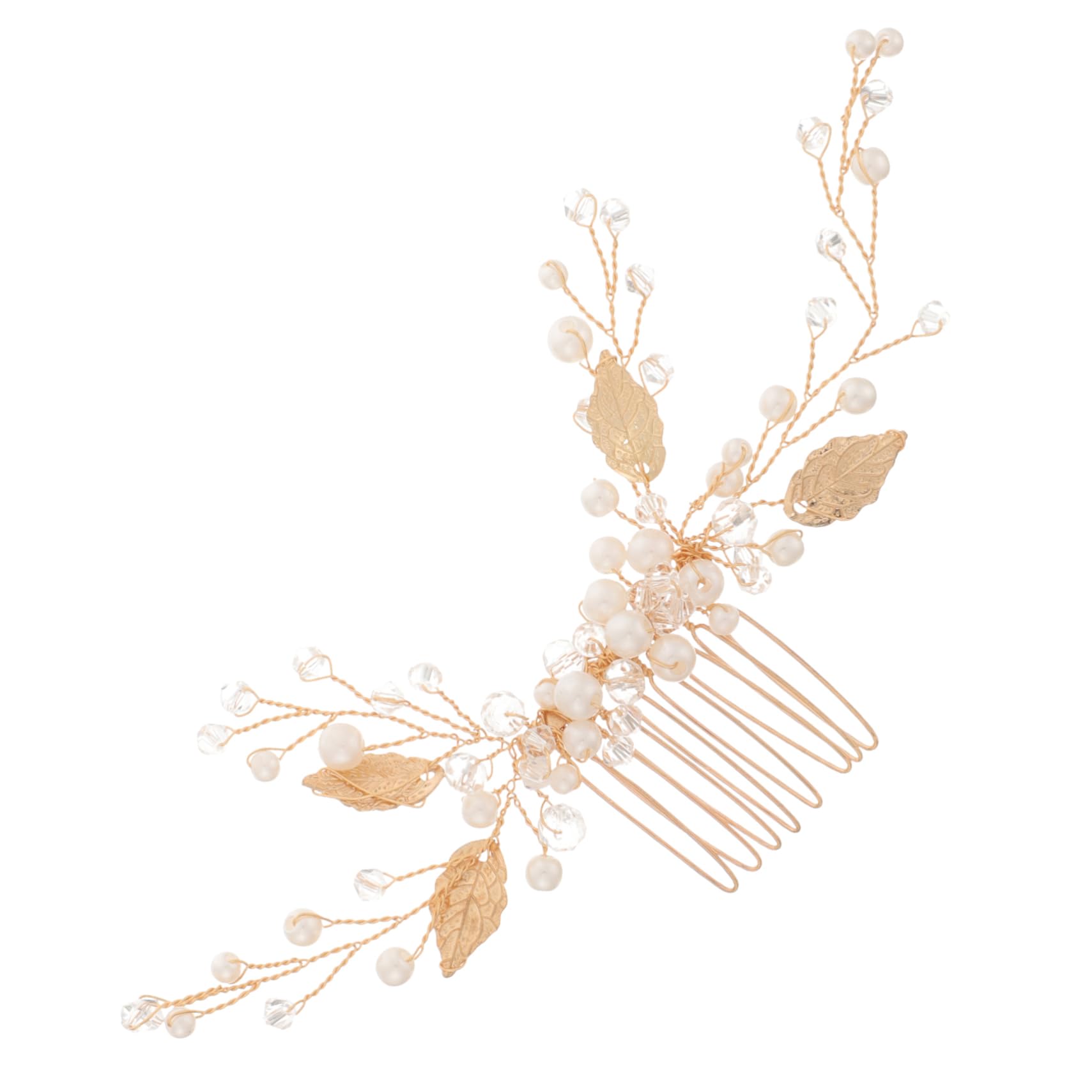 Package Include 1 x Bridal Hair Comb Features -Size:16.00X7.00X1.00cm/6.29X2.75X0 women hair decoration. -Color:Golden wedding hair pin -Material:Metal elegant bridal headpiece - Detailed craftsmanship with metal material, comb headpiece is safe, firm and can be used for a lasting time decorative hair combs for women. - Sparkling hair comb has unique accents, elegant with compact size, to better show your charm wedding hair comb. - The hair comb is adaptable to various formal occasions, not only for weddings, but also for prom wedding pearl hair pin. - Precisely craft, elegant accents shine and sparkle with every movement, decorative hair comb is your choice for wedding hair comb for bride. - Minimalistic design complements any bridal dress, and assures comfortable wear throughout the day bridal hair accessories. Goods Description gold hair accessories The decorative hair comb is the elegant yet stunning accessory for any bride looking to add a touch of nobility to her wedding day look.bridal headdress The wedding hair comb is both delicate and eye-catching, making it fitting to any bridal hairstyle