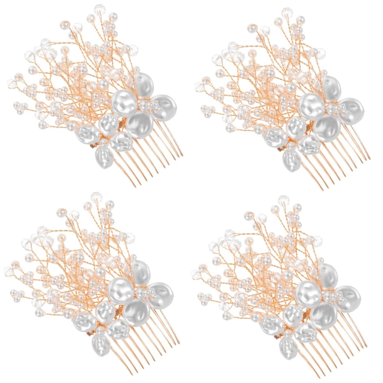 Package List 4 x Wedding Hair Comb Features -Material:Pearl, crystal, metal wedding crystal hair combs - Size: 12.00X11.00X1.20cm/4.72X4.32X0 crystal hair comb. - Color: As Shown crystal hair side comb - Suitable for most brides and bridesmaid to use, a wedding hair accessory wedding headpiece for bride. - assembly of delicate design and crystal decor make the hair comb look more beautiful wedding bridal hair comb. - wedding, evening party, banquet, Christmas, new year party, birthday and other special occasions wedding hair accessories. - Easy to put on and create stunning hair styles. A good choice for engagement or wedding decor rhinestone headpiece. - It presents a sparkly, stunning, elegant, chic, charming and eye-catching look, easily catching people's attention girl hair accessories. Goods Information bridal hair comb This hair comb with rhinestones and pearl decor, give your hairstyle unique charm and elegance.hair gems for women Delicate, attractive, elegant and fashionable wedding hair comb, highlight your appearance.rhinestone hair accessories A nice addition to your wedding dress, make your hair style look more charmingCrystal hair side comb-- wedding, evening party, banquet, christmas, new year party, birthday and other special occasions. Pearl crystal hair comb-- the gold color of the headpiece complements any bridal gown and hairstyle, adding a touch of elegance to your overall look. Bride hair comb-- bride hair clip this hair comb is skin friendly and delicate, durable and sure to give you a good using experience. Wedding rhinestone hair comb-- rhinestone pearl hair pieces an eye-catching hair comb for women, girls and ladies. make you so stand out in the crowd or the party. Bride rhinestone hair comb-- hold hair tightly without pulling your hair, don't worry about the situation that the hair comb drop down suddenly.