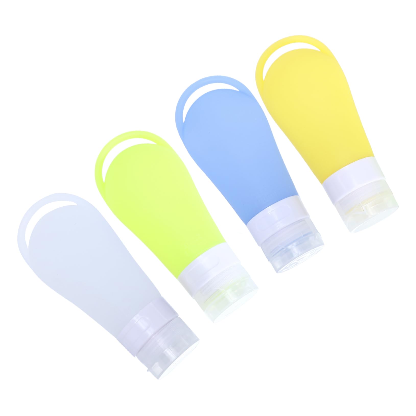 Package List 4 x sub bottles Characteristics - Size: About 13.50X5.30X3.50cm 5.31X2.08X1.38inch silicone travel bottles. - Color: Assorted Color Toiletry Bottles - Capacity: 90ml liquid containers. - Material: Silicone Small Lotion Bottles. - Leakproof design protects your clothes and bags from the liquid leakage or spillage Travel Lotion Dispensers. - A choice for hand , lotion, facial cleanser, face cream, body lotion, shampoo, hair conditioner and more Squeezable Shampoo Containers. - Mainly made with silicone material, lightweight, durable for use liquid keychain. - These sub bottles allow you to use them fully until the is used up, no waste Travel Bottles. - These reusable and refillable empty bottles are the best choice for your travel or business trip Round Hole Cosmetics Travel Bottle. Goods Information airplane travel bottles Practical and special design make these travel bottles are easy to fill and use.travel liquid bottles Leakproof design, no longer have to worry about the risk of cosmetics being leaked.Empty Storage Bottles They are travel essentials, easy to carry, save your backpack space, bring huge convenience for your journeyTravel lotion bottles: the dispensers for foundations, essences, creams, moisturizers, hand soaps and lotions. Empty silicone bottles: light weight and proper size, you can even keep them in your pouch. Silicone cosmetic bottle: they use the safe material, you can use them with confidence. Lotion dispensing tube: [package includes]: you will receive 4 refillable empty travel bottles with the capacity of 90 ml in yellow, transparent, blue and green colors to give you a wonderful experience and enough to meet your daily needs. Sample bottles: leakproof design protects your clothes and bags from the liquid leakage or spillage.