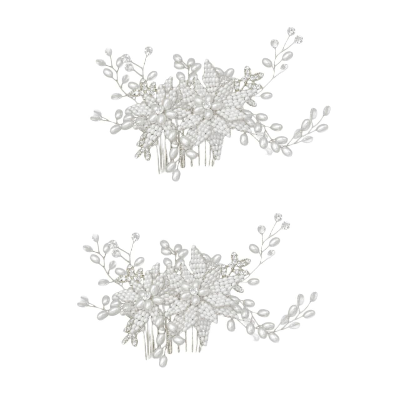 Package includes: 2 x Wedding Hair Comb Features Color: Silver Wedding Headpiece Material: hair comb, pearls, rhinestones. Size: approx. 12 x 8 x 1 cm, bridal hair comb. Wedding hair accessories will match any wedding party theme. Specially designed for wedding, party, prom, party, engagement, anniversary or other special occasions. Hair pin for women. This wedding hairpiece looks great in almost any bridal headpiece with wedding hairstyle. Delicate pearls and rhinestones give you a unique sense of beauty and leave a deep impression when using the bridal comb. Handmade hair combs accessories for brides and bridesmaids, available in beautiful colours. Designed for versatility, this wedding hair accessory can be adorned in an updo or worn to delicately frame half up and low hairstyle. Product Information Wedding crystal hair comb, perfect for bride, bridesmaid, flower girl or party Rhinestone Hair Comb This exquisitely designed hair comb is a perfect alternative for headwear such as crown, tiara or headband. DIY Pearl Hair Comb: this bridal hair comb is made of beautiful pearls and rhinestones with a color coating