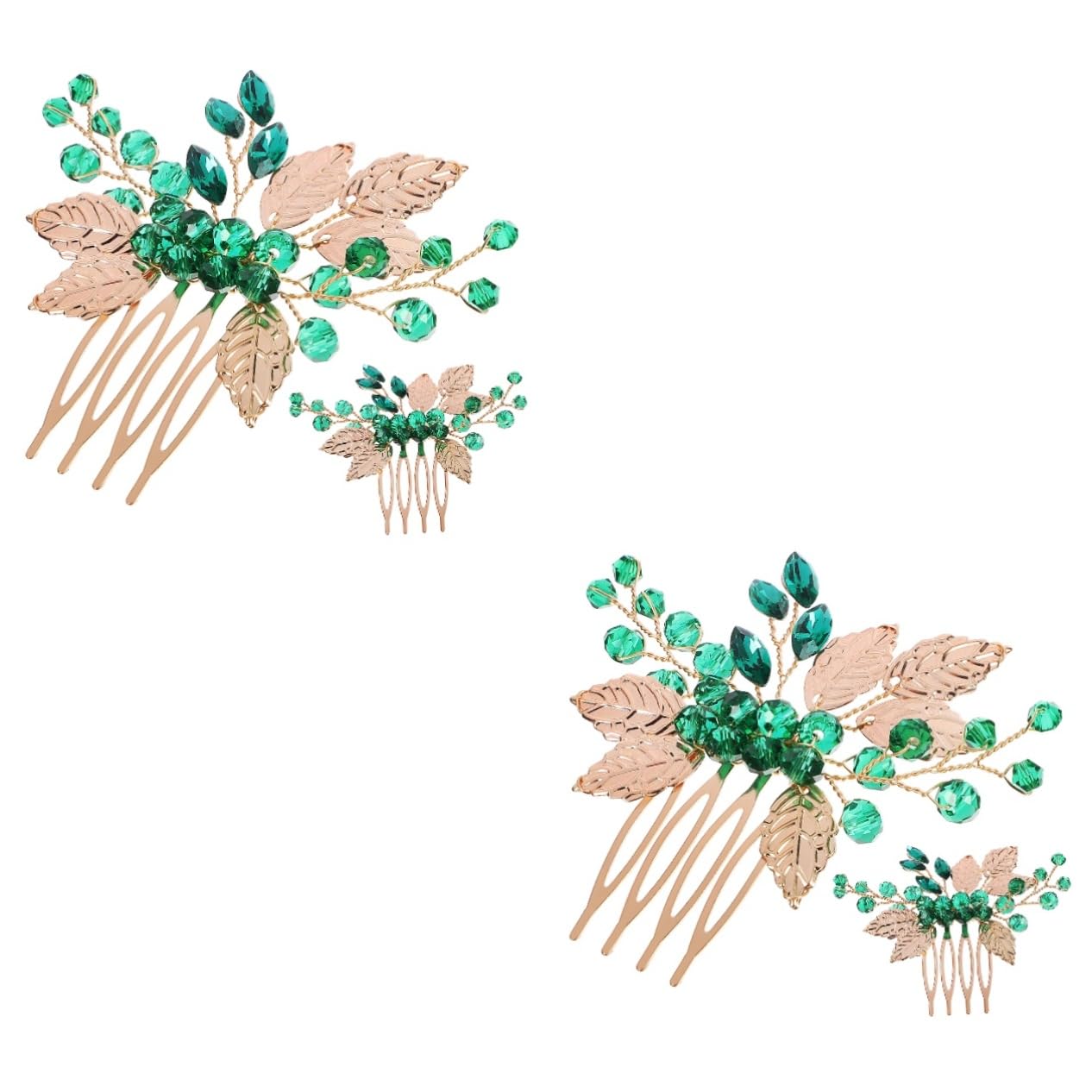 Package includes: 4 x hair combs. Features - Size: 7.00 x 6.00 x 0.50 cm / 2.75 x 2.36 x 0 green decoration. Material: Alloy, Vintage Hair Side Comb Colour: as shown, gold trim. . The hair comb is made of alloy material, which is lightweight, not easy to break and deform, so bridal hair can be used longer. The hair comb clip is easy to carry, is a good make-up assistant and can also be easily DIY your own hairstyle for women's hair comb clips. Decorated with shiny rhinestones, gold leaf and vine, this hair comb has a beautiful decorative effect on your hair. Bridal Hair Comb Clips This hair comb adds sparkle to your hairstyle and highlights the unique bridal headpiece with feminine elegance. You can wear this hair comb on many different occasions, e.g. Such as daily wear, weddings, parties, proms, beach, anniversary, dating, etc. Wedding hair comb. Product Information Decor Are you still looking for a beautiful hair comb? Do you want to make your own hairstyle? Diamante Leaf Hair Comb Our hair comb has an exquisite appearance and a sparkling effect that can decorate your hair perfectly. Hair accessories for women. Please choose our product. Decorative hair comb that you can use as an excellent for your mother, daughter and girlfriendWedding hair comb clip - You can use it as an excellent for your mother, daughter and girlfriend. Wedding Headpiece for Bride - You can wear this hair comb on many different occasions, e.g. in everyday life, weddings, parties, proms, beach, anniversary, dating, etc. Rhinestone - Are you still looking for a beautiful hair comb?. Bride Headpiece - You can easily wear this hair comb and it is a good make-up assistant. You can use it perfectly to create your own hairstyle. Hair comb for parties - It is suitable for wearing in many scenes, such as everyday life, party, wedding, dating, prom, anniversary, beach and so on.