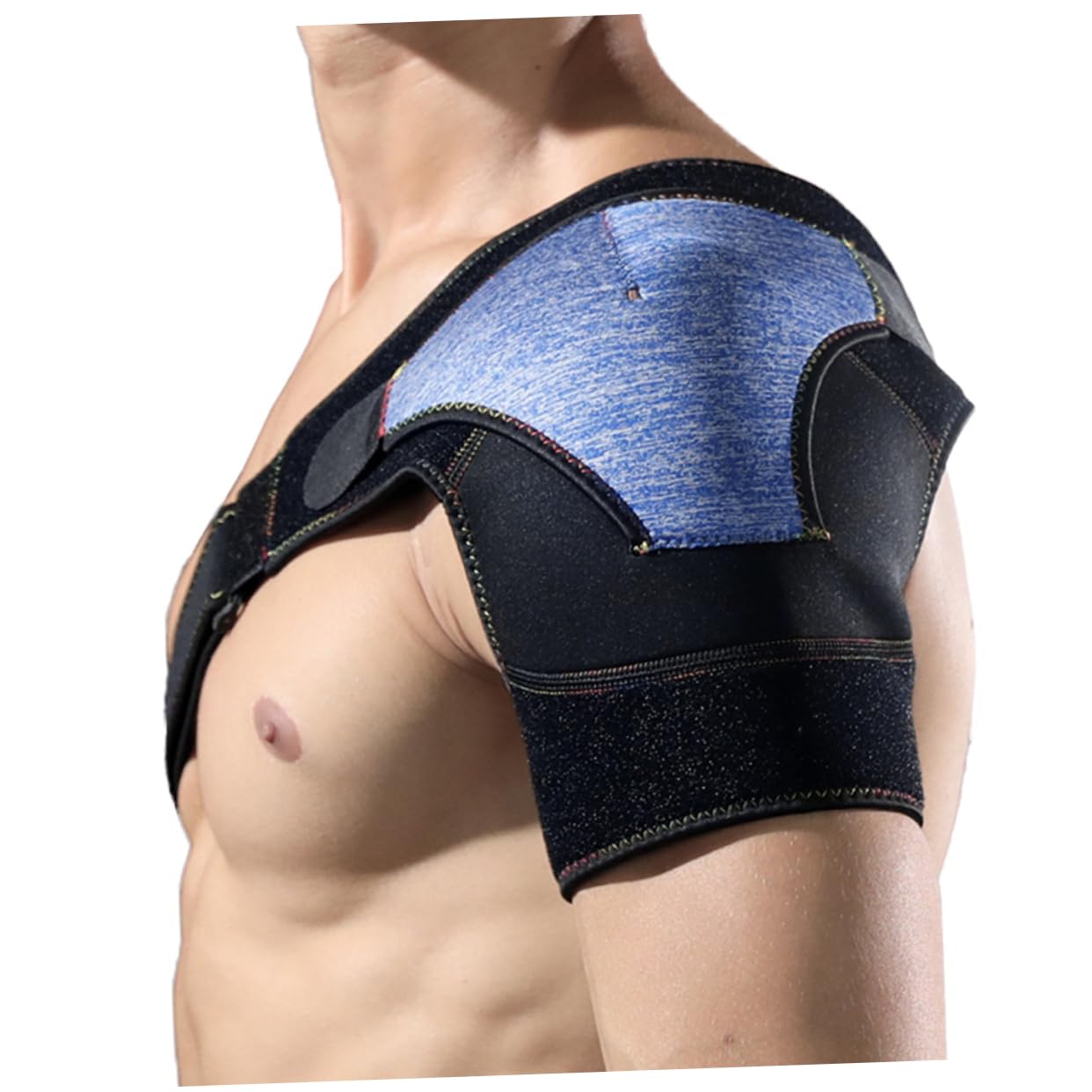 Package Include 1 x shoulder pad Features - Color: Blue shoulder brace. - Material: Elastic cloth, rubber shoulder support. - Size: About 27 x 20 x 1cm. - Hook and loop pasted deisgn for easy tightness adjustment breathable shoulder strap. - Provide good compression to alleviate from strenuous activity shoulder strap. - from over use injuries, rotator cuff, shoulder and shoulder dislocation strap. - breathable materials for gentle support, soothing warmth and comfort to your shoulder shoulderpad. - Helping to increase blood flow and time without restricting movement. Goods Information heated eye pads Adoption of , the strap is for active users.Shoulder Sleeve This support is designed provide shoulder protection and to keep you cool and comfortable in all circumstances.strap Light weight helps caused by shoulder pulls or strains