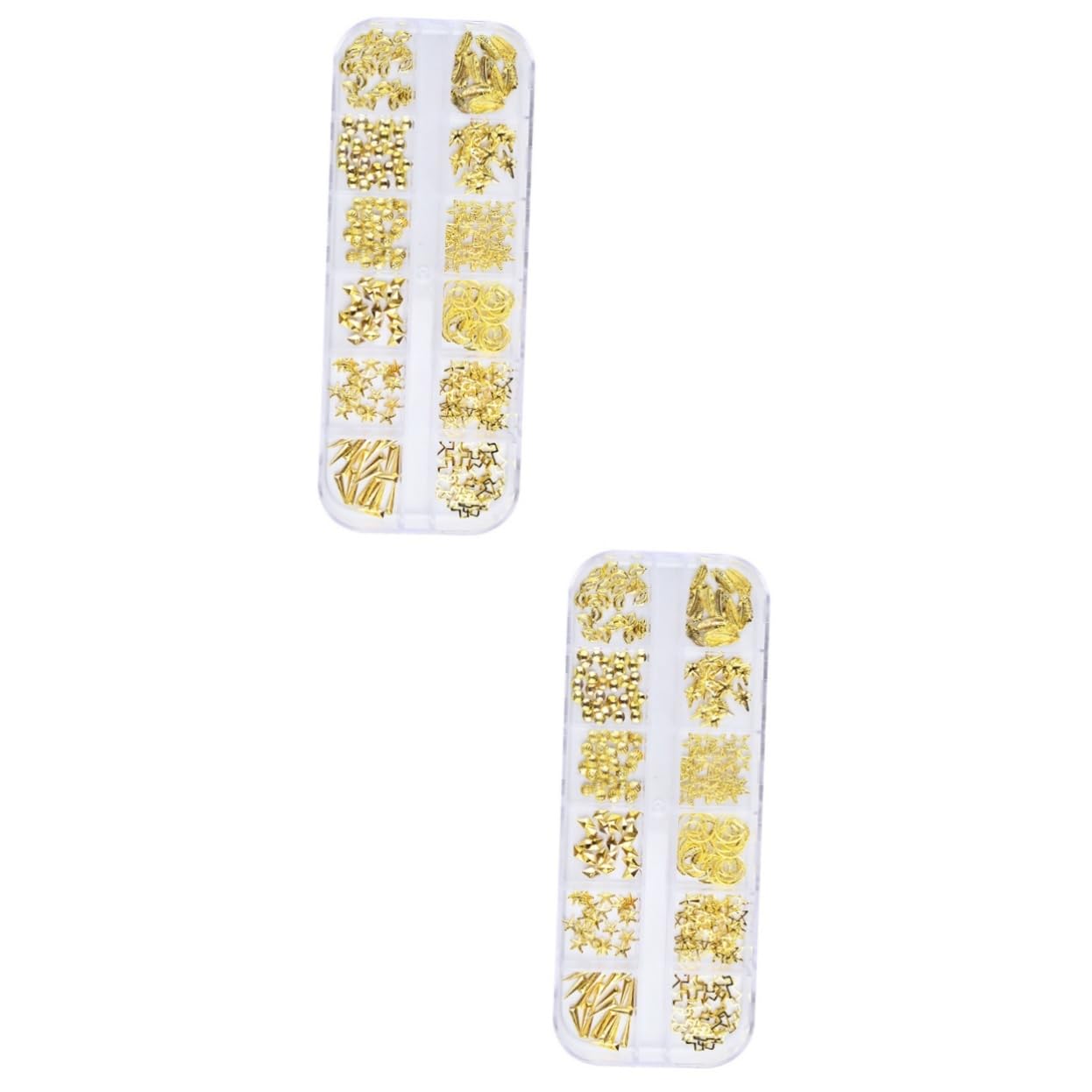 Package List 2 x box of nail decor Characteristics - Color: Golden nail art ornaments. - Material: Metal. - Size: About 13x5x1.5cm. - Fabulous effect of the decorations will make your nail art more attractive and elegant manicure decoration. - They are easy to apply on natural or artificial nails, and can decorate your cell phone, pencil case, and so on nail decor metal. - DIY nail art work with your imagination can make you glamorous and attractive DIY nail accessories. - Suitable for salon or home use nail art rivet. - Different patterns, large quantities to meet your needs. Goods Description artificial nails Be tired of the same nail art every day? Want to DIY the unique nail art as you like? The nail ornaments set can totally satisfy your needs.nail decorations for nail art Suitable for DIY nail art decoration lover at home or professional manicure use.manicure tools After you apply some nail gel to your nail, you can stick them to the nails SAFETY WARNING 1