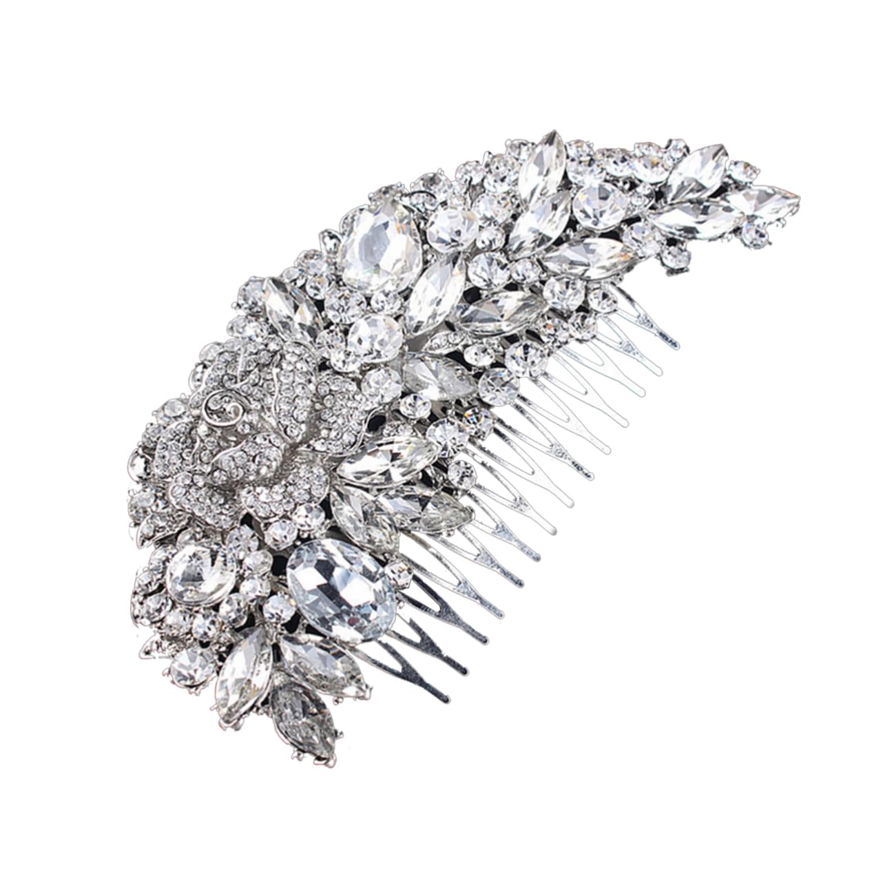 Package List 1 * Delicate Charming Women's Bridal Wedding Crystal Rhinestones Decor Flower Style Hair Comb Clip Hair Pin Hair Accesories Features - Material: hard alloy, rhinestone Bridal hair comb. - Length: about 6.5*12.5cm Flower hair comb wedding. - Color: mainly silver Women hair clip. - Works great with any hair styles for women of all ages Women hair comb. - It makes your look noble and add your charm Bridal hair comb women. - and Wedding Crystal Rhinestones Decor Flower Style Hair Comb. - Fantastic hair accessories for Weddings, Proms, Parties or other special occasions. - Crystal rhinestones decor flower style design alloy hair comb, very delicate and charming. - The hair comb is easy to get in the hair and will assure a snug fit on various hair styles. Goods Information Bridal hair comb The item is a fashion and delicate women's hair comb clip, which is mainly made of durable hard alloy material, and features crystal rhinestones decor flower design to make it more unique and charming.Women hair comb it will be a great for women who are into fashion trend.Bridal hair comb women Besides, the hair comb clip is easy to get in the hair and will assure a snug fit on various hair styles