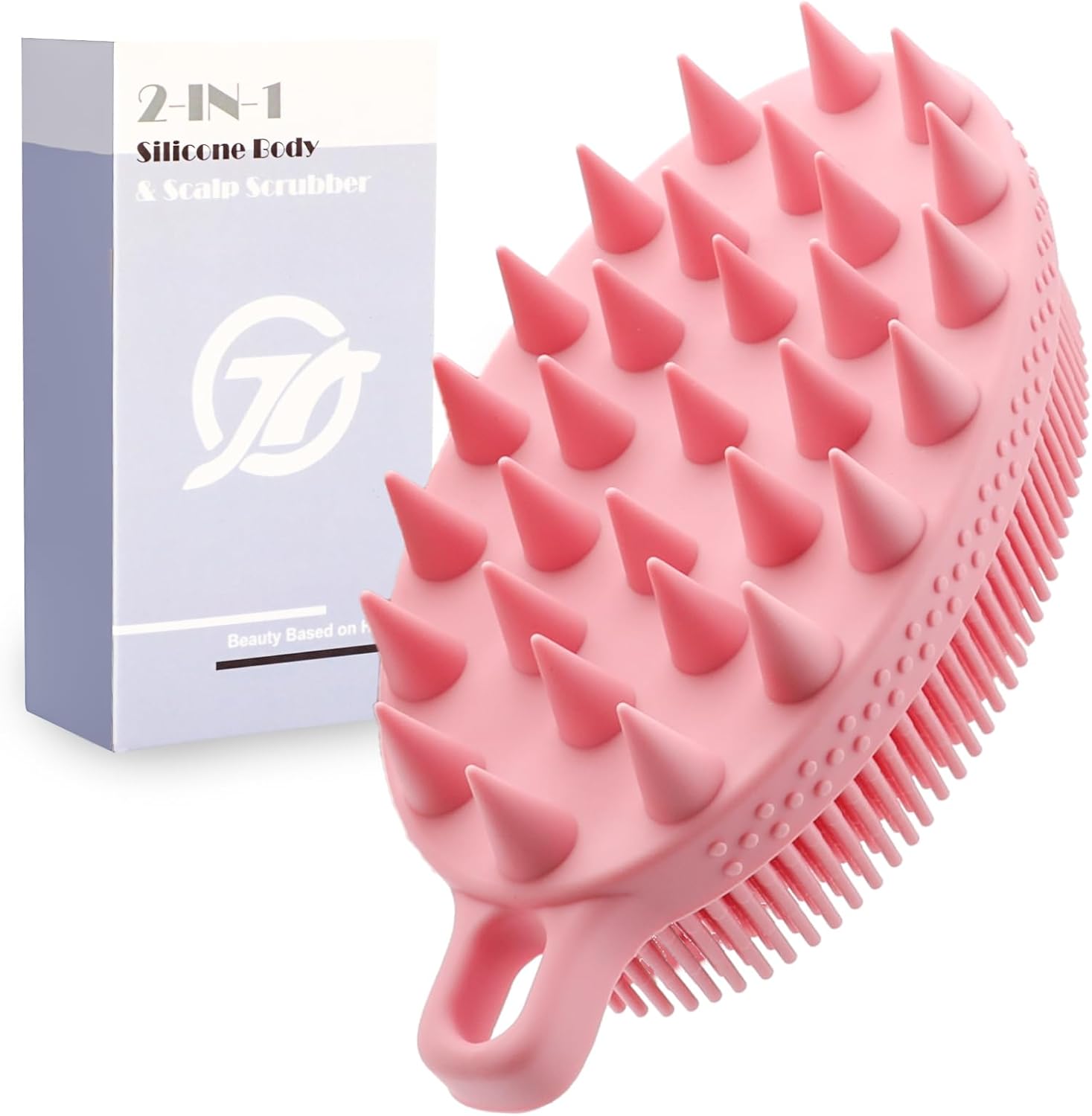 FREATECH 2-in-1 Silicone Body Scrubber - Bath Shower Body Brush and Shampoo Brush Scalp Massager Exfoliator, Deep Cleanse Skin & Hair, Lathers Well, Easy to Clean and Long-Lasting, Pink