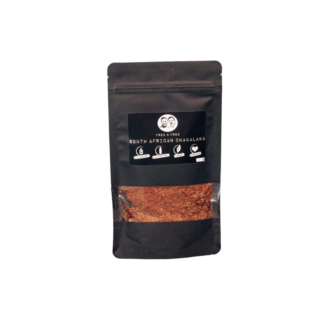 TASTE EXPLOSION – Your search for the perfect spice blend for Chakalaka dip is over! Using the finest ingredients of sea salt, dried tomatoes, sweet paprika, garlic, parsley, chilli, sugar, chilli, coriander, white pepper and ginger we create a unique taste. VEGAN ORGANIC - Fred Fred is available individually and in the organic dip mix set. These are 100 natural and free of allergens. The product is vegan and of the best organic quality. It is therefore also suitable for vegans and vegetarians. FRESH QUALITY - The use of extra fresh and natural herbs and spices, processed immediately and then packaged in aroma-protecting sachets, allows us to guarantee an intense and fresh taste. - Your palate will thank you! WITHOUT ADDITIVES - Fred Fred dips give you a taste of South African cuisine. We only use natural ingredients in our food that meet our high standards. USE - To prepare a spicy African-style dip. For the preparation, mix 4 tablespoons of crème fraîche and 1 tablespoon of tomato paste with 2-3 tablespoons of spice mixture. So that the mixture can develop its full aroma, prepare the dip at least an hour before serving it. A different dip to accompany grilled meats, fish, rice dishes or vegetables. INGREDIENTS Meersalz, Cracked Tomatoes, Paprika edelsüß, Knoblauch, Petersilie, Chili, Zucker, Piment, Koriander, Pfeffer weiß and Ingwer. DIRECTIONS FOR USE Consumption recommendation: The spice blend is used to refine marinades and dishes. USE - To prepare a spicy African dip. To prepare, mix 4 tablespoons of crème fraîche and 1 tablespoon of tomato paste with 2-3 tablespoons of spice mix. To allow the mixture to develop its full aroma, prepare the dip at least one hour before serving. A different dip to accompany grilled meats, fish, rice dishes or vegetables. NO ADDITIVES - Fred Fred dips give you a taste of South African cuisine. We only use natural ingredients for our food that meet our high standards. FRESH QUALITY - By using extra fresh and natural herbs and spices, processed immediately and then packed in aroma-protecting bags, we guarantee an intense and fresh taste. - Your palate will thank you!. VEGAN ORGANIC - Fred Fred is available individually and in the organic dipping mix set. These are 100 natural and allergen-free. The product is vegan and of the best organic quality. It is therefore also suitable for vegans and vegetarians. TASTY EXPLOSION - Your search for the perfect spice blend for Chakalaka dip is over! Using the finest ingredients of sea salt, sun-dried tomatoes, sweet paprika, garlic, parsley, chili, sugar, chili, coriander, white pepper, and ginger, we create a unique taste. EXPLOSION GOÛTÉE - Votre recherche du mélange d'épices idéal pour la trempette Chakalaka est terminée ! À l'aide des meilleurs ingrédients de sel marin, de tomates séchées, de paprika doux, d'ail, de persil, de piment, de sucre, de piment, de coriandre, de poivre blanc et de gingembre, nous créons un goût unique. VEGAN BIO - Fred Fred est disponible à l'unité et dans le set de mélanges à tremper bio. Ceux-ci sont 100 naturels et exempts d'allergènes. Le produit est végétalien et de la meilleure qualité bio. Il convient donc également aux végétaliens et aux végétariens. QUALITÉ FRAÎCHE - L'utilisation d'herbes et d'épices extra fraîches et naturelles, traitées immédiatement et emballées ensuite dans des sachets protégeant les arômes, nous permet de garantir un goût intense et frais. - Ton palais t'en remerciera ! SANS ADDITIFS - Les dips Fred Fred vous donnent un aperçu de la cuisine sud-africaine. Nous n'utilisons pour nos aliments que des ingrédients naturels qui répondent à nos exigences élevées. UTILISATION - Pour préparer un dip piquant à l'africaine. Pour la préparation, mélanger 4 cuillères à soupe de crème fraîche et 1 cuillère à soupe de concentré de tomates avec 2-3 cuillères à soupe de mélange d'épices. Pour que le mélange puisse développer tout son arôme, préparez le dip au moins une heure avant de le servir. Un dip différent pour accompagner les viandes grillées, le poisson, les plats de riz ou les légumes. INGRÉDIENTS Meersalz, Cracked Tomatoes, Paprika edelsüß, Knoblauch, Petersilie, Chili, Zucker, Piment, Koriander, Pfeffer weiß et Ingwer. MODE D'EMPLOI Recommandation de consommation : le mélange d'épices est utilisé pour affiner les marinades et les plats. UTILISATION - Pour préparer un dip piquant à l'africaine. Pour la préparation, mélanger 4 cuillères à soupe de crème fraîche et 1 cuillère à soupe de concentré de tomates avec 2-3 cuillères à soupe de mélange d'épices. Pour que le mélange puisse développer tout son arôme, préparez le dip au moins une heure avant de le servir. Un dip différent pour accompagner les viandes grillées, le poisson, les plats de riz ou les légumes. SANS ADDITIFS - Les dips Fred Fred vous donnent un aperçu de la cuisine sud-africaine. Nous n'utilisons pour nos aliments que des ingrédients naturels qui répondent à nos exigences élevées. QUALITÉ FRAÎCHE - L'utilisation d'herbes et d'épices extra fraîches et naturelles, traitées immédiatement et emballées ensuite dans des sachets protégeant les arômes, nous permet de garantir un goût intense et frais. - Ton palais t'en remerciera !. VEGAN BIO - Fred Fred est disponible à l'unité et dans le set de mélanges à tremper bio. Ceux-ci sont 100 naturels et exempts d'allergènes. Le produit est végétalien et de la meilleure qualité bio. Il convient donc également aux végétaliens et aux végétariens. EXPLOSION GOÛTÉE - Votre recherche du mélange d'épices idéal pour la trempette Chakalaka est terminée ! À l'aide des meilleurs ingrédients de sel marin, de tomates séchées, de paprika doux, d'ail, de persil, de piment, de sucre, de piment, de coriandre, de poivre blanc et de gingembre, nous créons un goût unique.