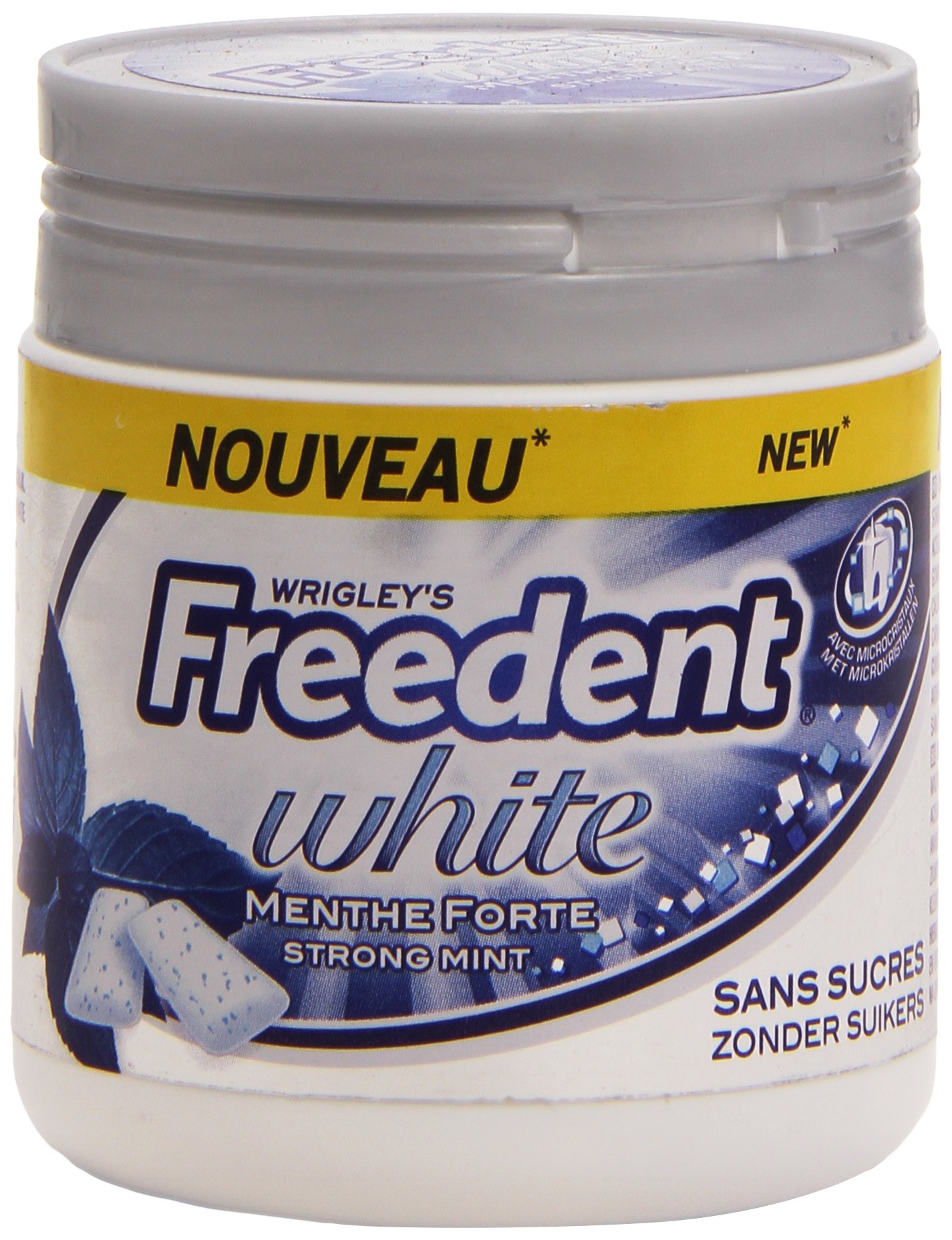 Box of chewing gum from the "Freedent" brand, consisting of 60 dragees with a delicious Strong Mint flavor. Freedent, our range of sugar-free, fresh or fruity chewing gums to keep teeth clean and healthy on any occasion.It's your turn to shine with Freedent! Freedent: the leading brand in oral hygiene. Enjoy every moment with Freedent. Boîte de chewing-gums de la marque "Freedent", composée de 60 dragées au délicieux goût Menthe forte. Freedent, notre gamme de chewing-gums sans sucres, frais ou fruités pour garder les dents propres et saines en toute occasion.A vous de briller avec Freedent!. Freedent : la marque leader sur l'hygiène Bucco dentaire. Profitez de chaque moment avec Freedent.