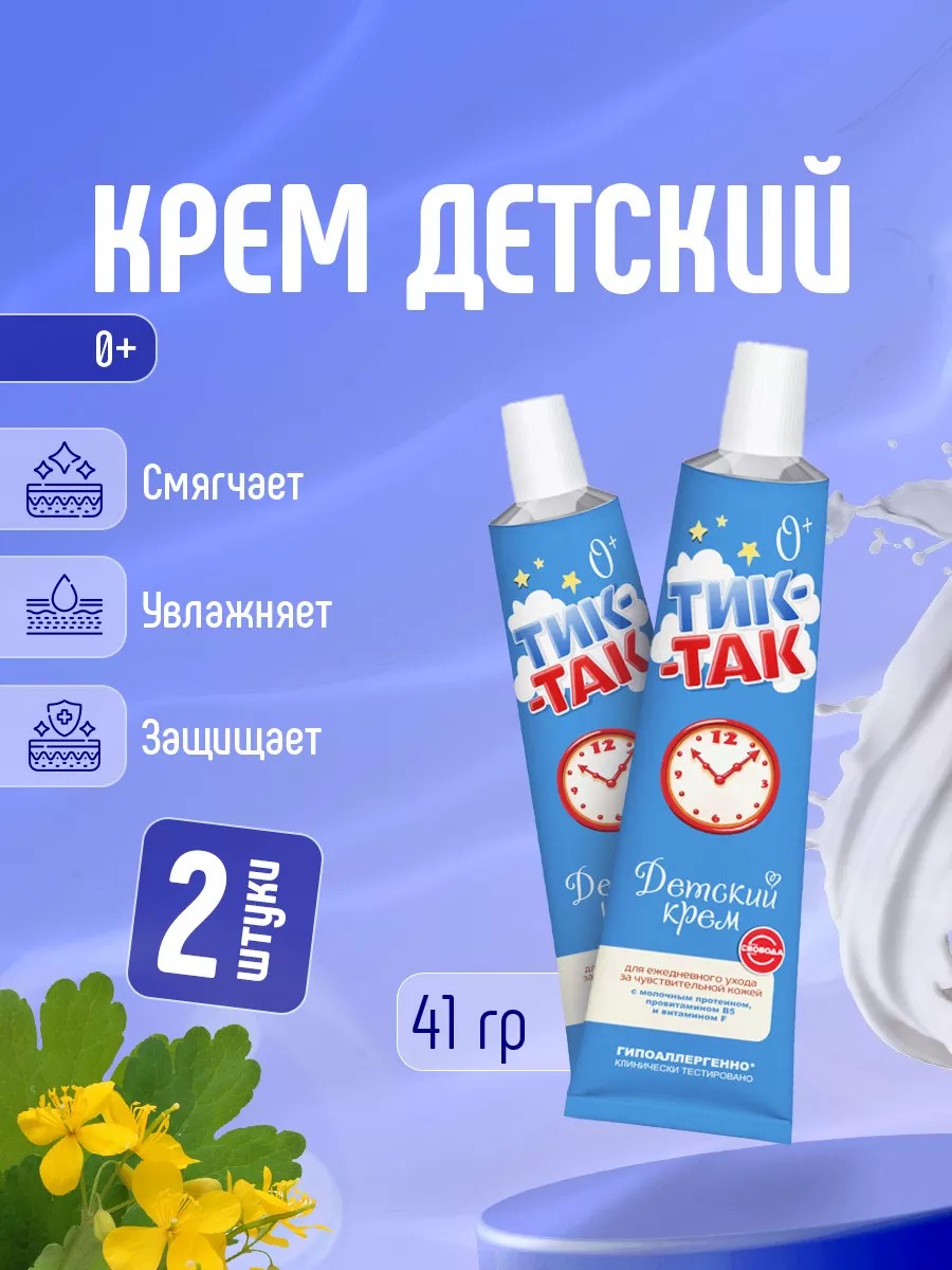 Свобода Тик-Так Крем детский с молочным протеином и витамином В5 и F набор 2шт*41г алюминиевая туба. Крем детский для новорожденных Тик-Так с молочным протеином предназначен для ежедневного ухода за чувствительной кожей детей с первых дней жизни.