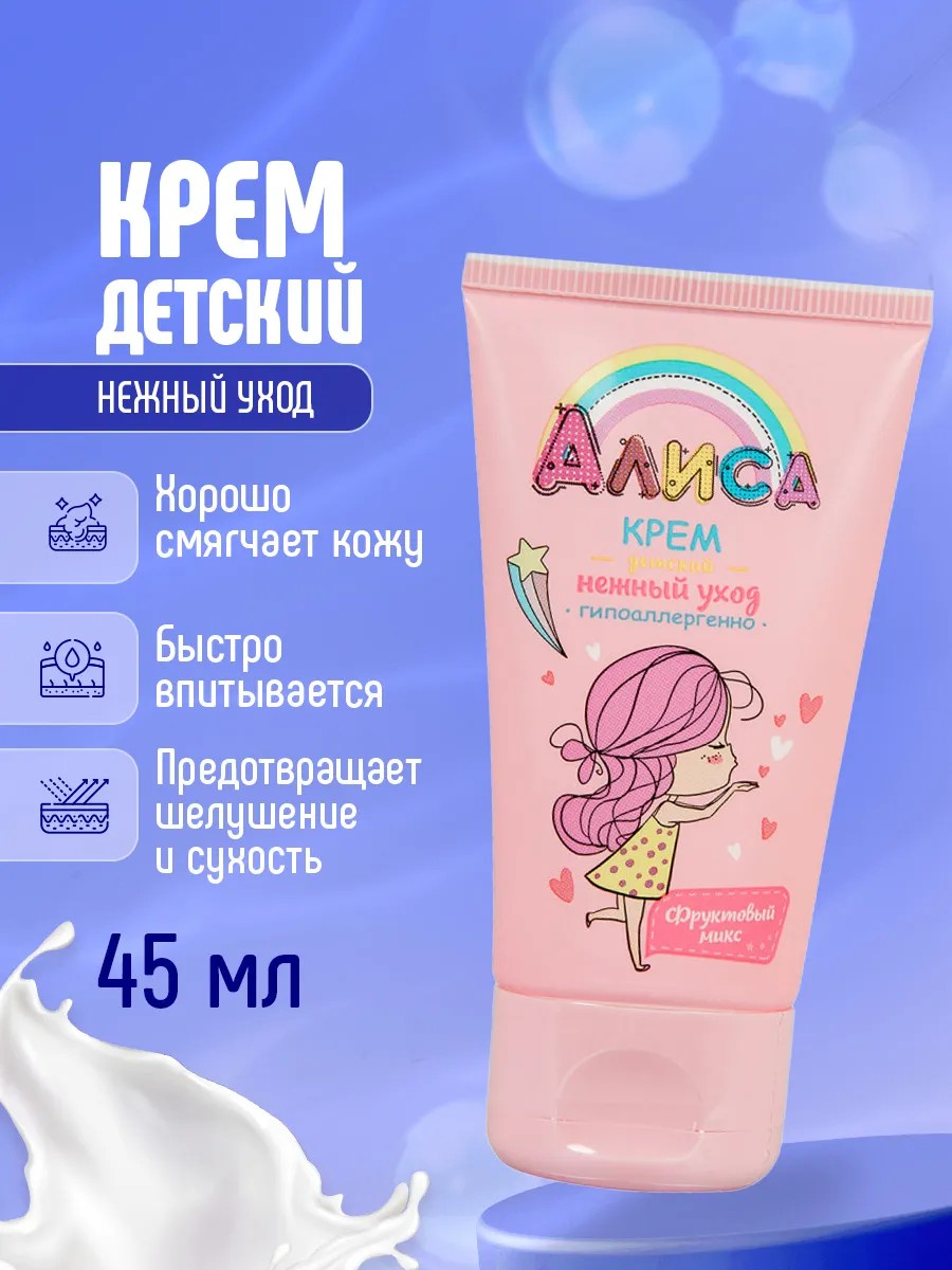 Компактный формат 45 мл позволяет всегда иметь крем под рукой — дома, на прогулке или в путешествии. Подарите своей принцессе нежность и заботу с детским кремом «Алиса» — и её кожа ответит вам здоровым сиянием и бархатистой мягкостью!
