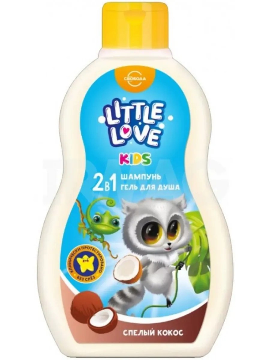 Детский шампунь + гель, Little love, спелый кокос, 400 мл