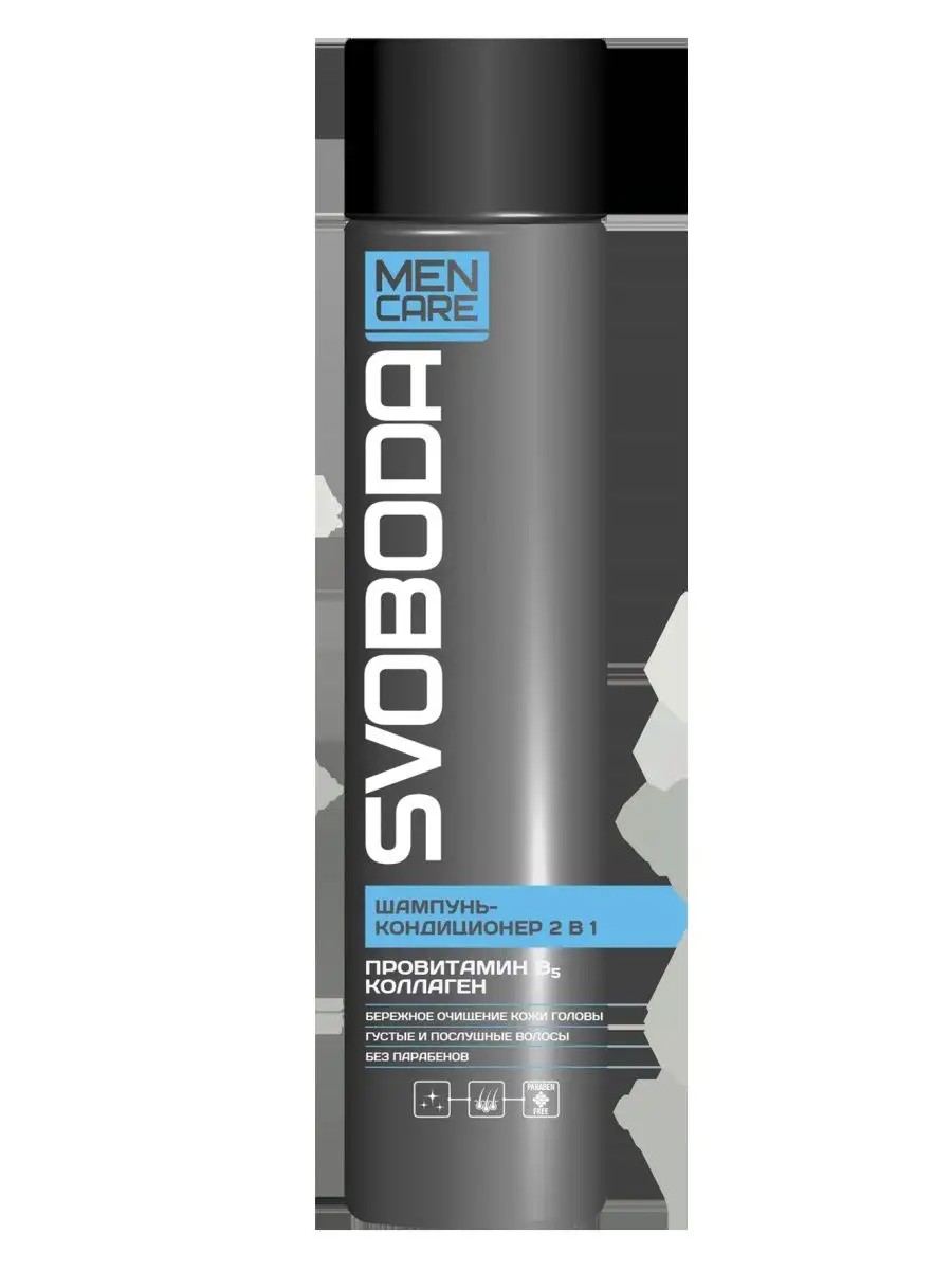Свобода Шампунь-кондиционер 2 в 1 с провитамин В5, коллаген, 300 мл. Специально созданный для ухода за мужскими волосами шампунь-кондиционер оказывает эффективное укрепляющее действие на волосы. Коллаген - активный ингредиент, который уплотняет волосы, делает их более сильными и упругими, создавая эффект густых волос. Провитамин В5 глубоко проникает внутрь волос, восстанавливая и защищая их структуру изнутри. Бережное очищение кожи головы Густые и послушные волосы. Эффективное укрепляющее действие.