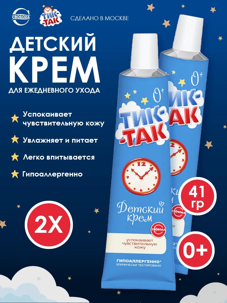 СВОБОДА Крем детский Тик-Так 0+ для чувствительной кожи, 2шт