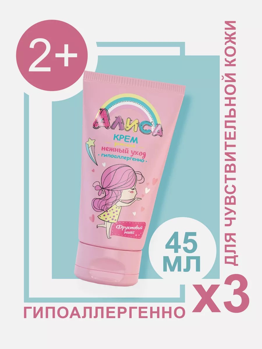 Детский крем Алиса нежный уход. В наборе 3 штуки по 45 мл. Предназначен для нежной кожи малышей. Его легкая текстура быстро впитывается без жирного блеска и пленки. Формула обогащена комплексом из растительных масел оливы, ши и миндаля, экстракта алоэ, витаминов А, Е, пантенола и молочного протеина. Действующие компоненты укрепляют естественные защитные функции эпидермиса, успокаивают и смягчают, поддерживают нормальный уровень влажности, предотвращая сухость и шелушение. Средство не содержит вредных для ребенка веществ.